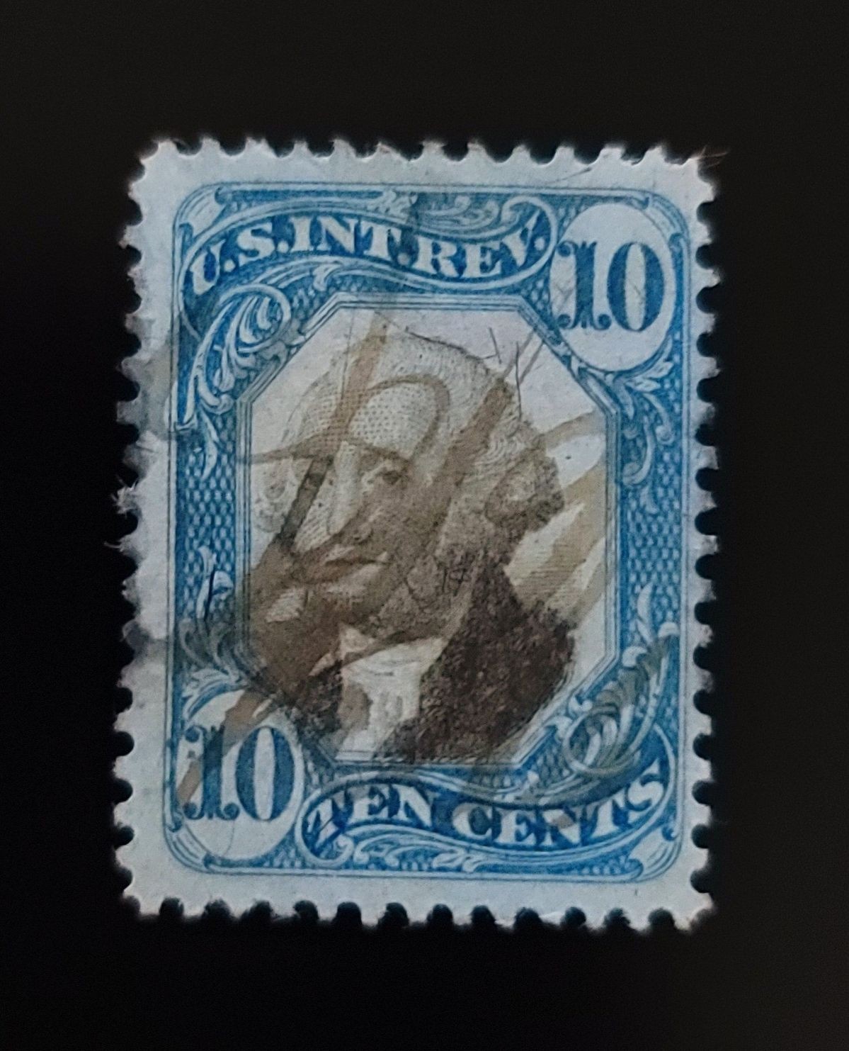 1871 10c U.S. Internal Revenue, George Washington, Blue & Black, Scott R109