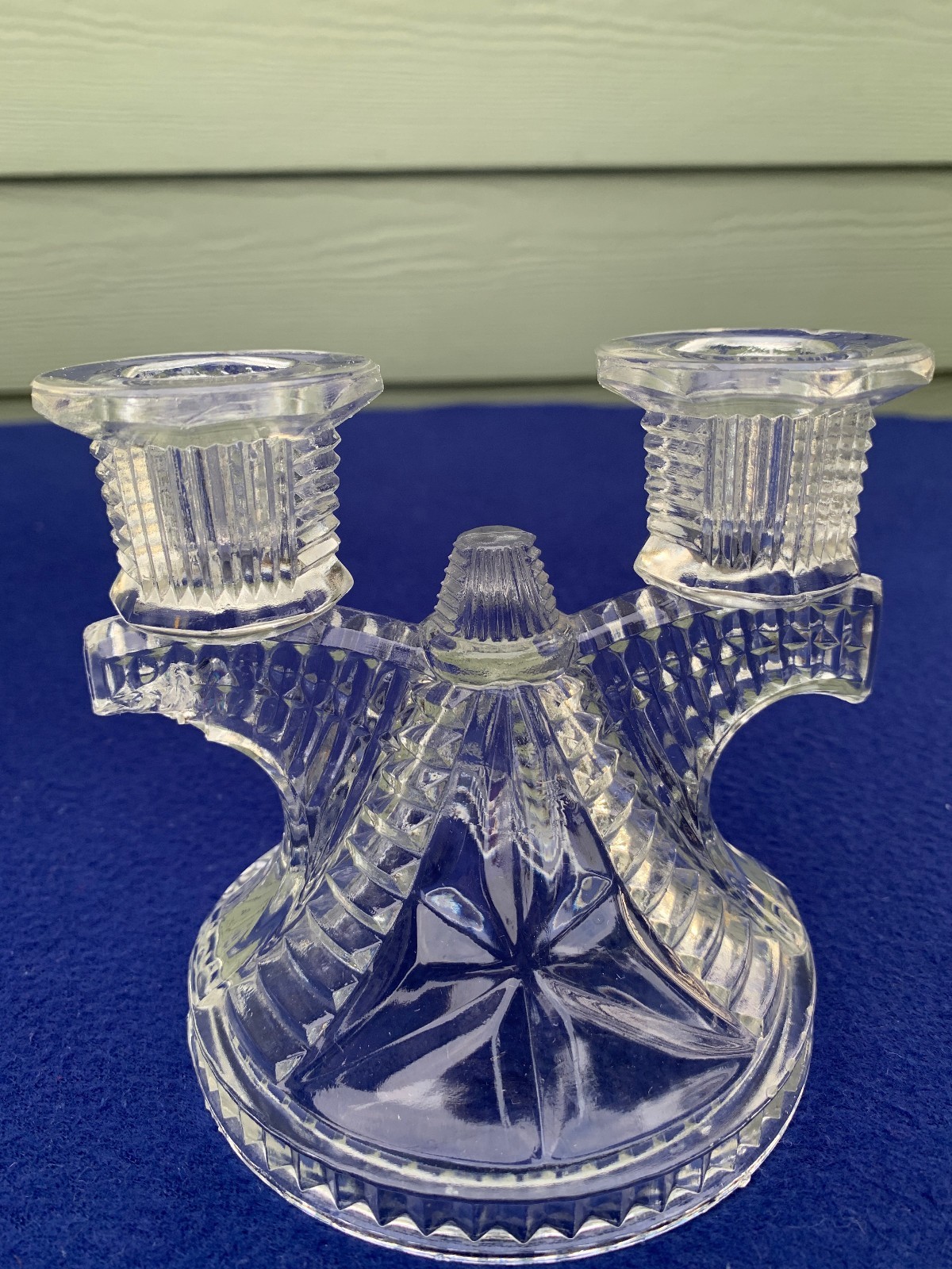 Federal Glass double candleholder pair, Wigwam, Windmill, Star 4.5" tall #2826