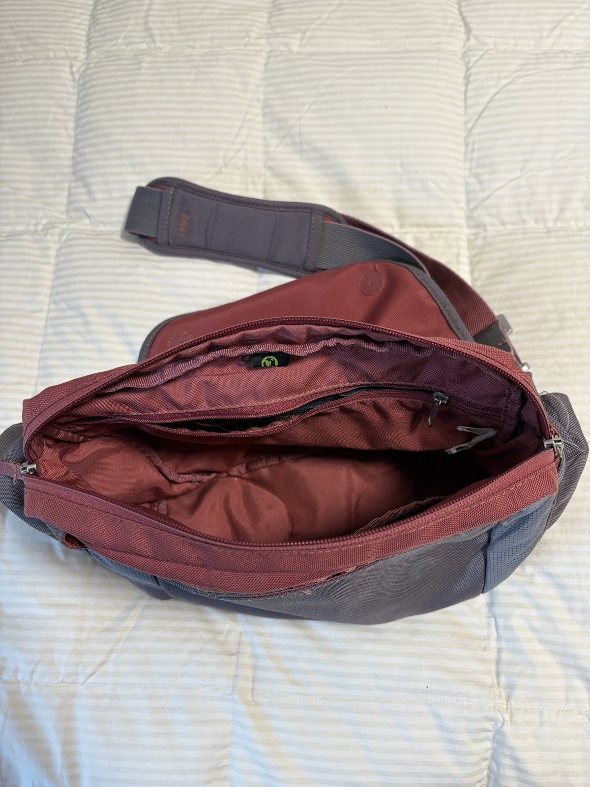 REI Womens Chock Shoulder Crossbody Bag Messenger Travel Hiking Camp Gray Red