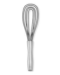 Drawing upon more than 50 years of culinary experience, we?ve designed and developed an exclusive line of nonstick kitchen tools?perfect for use with nonstick cookware. Great for making a roux and blending sauces or gravies, our professional-quality whisk has a flat, silicone-coated head that presses out lumps as you stir. The ergonomically engineered brushed-stainless-steel handle ensures excellent balance and control?and makes the whisk exceptionally comfortable to use.