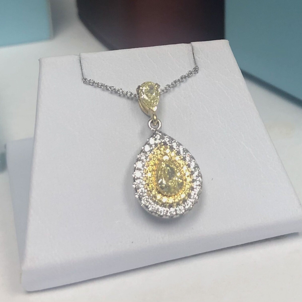 1.11 CT Natural Fancy Yellow Pear Diamond Pendant Necklace 14k White Gold