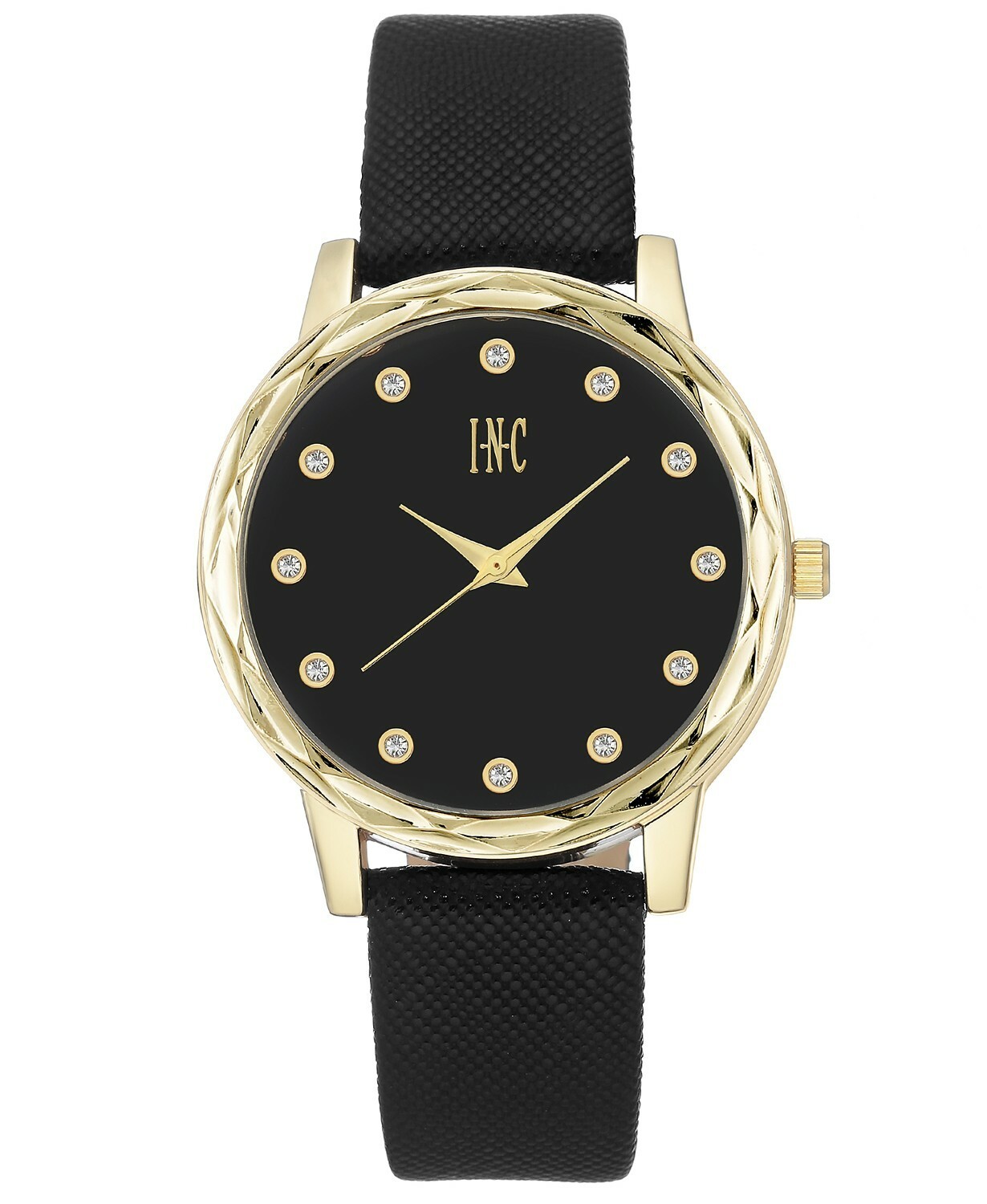 I.N.C. Women's Black Faux Leather Strap 38mm Watch with Interchangeable Bezels