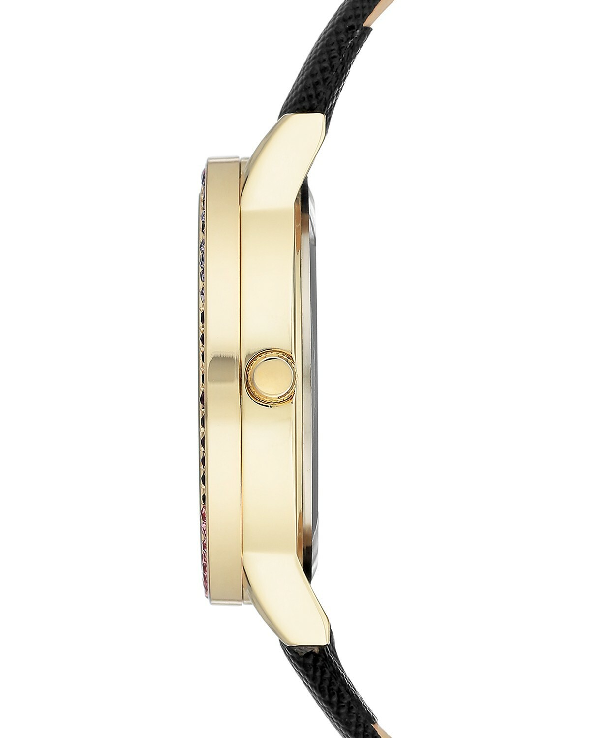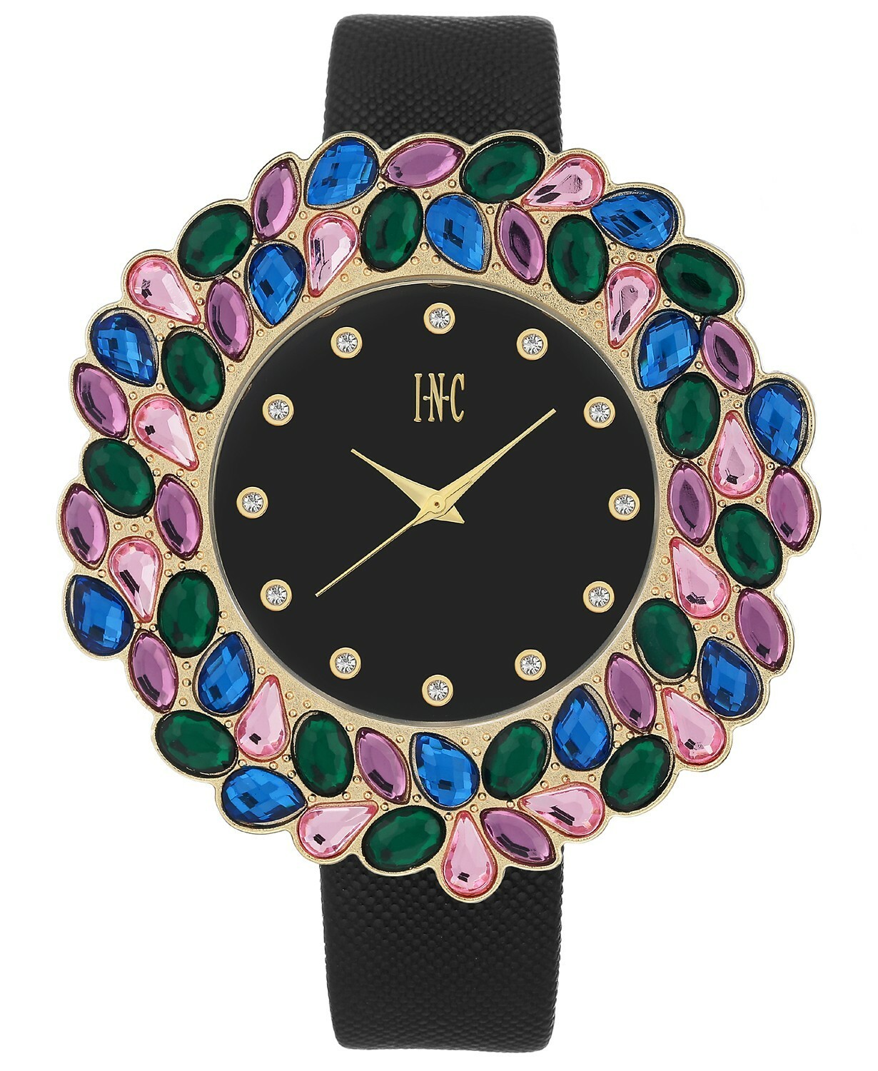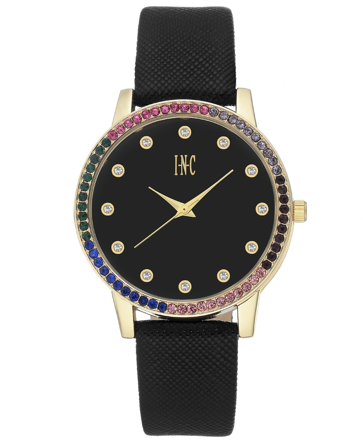 Multicolored crystals encircle the sparkling dial of this joyful black and gold-tone timepiece from I.N.C. International Concepts.