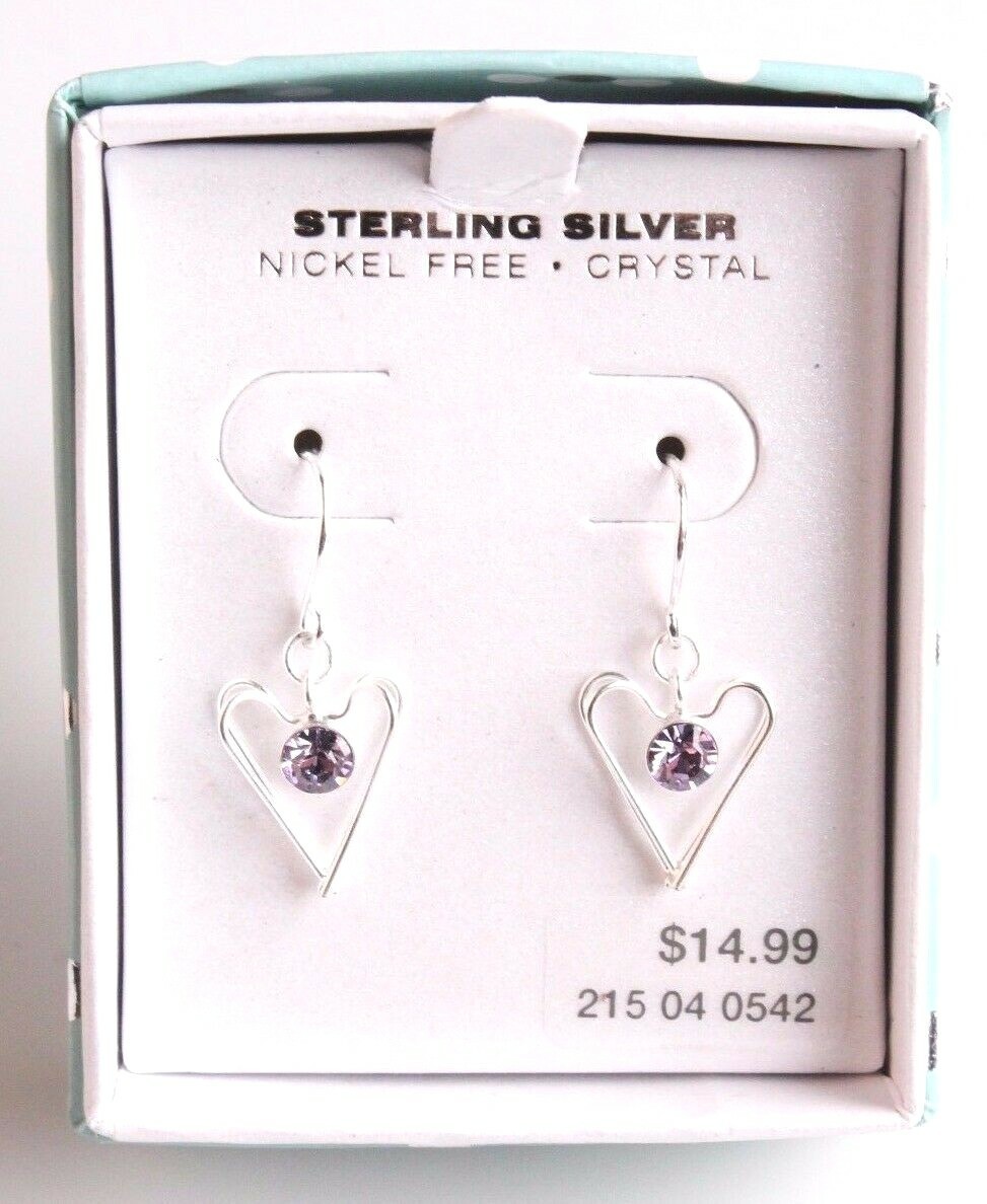 This is for a brand new pair of Girls Sterling Silver 925 Dangle Drop Clear Crystal Hearts Earrings Crystal hearts measure about 10mm Drop is a bit over 1 inch Earrings come in gift box