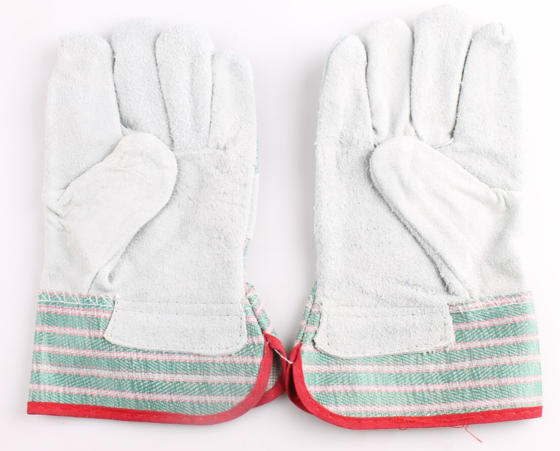 This cowhide, split leather palm is derived from the shoulder section of the hide. It features a pink/green striped canvas back, 2.5-inch starched safety cuff, and a gunn pattern ? the most common pattern used for work gloves. Crafted for durability and comfort, these Industrial Leather Palm Safety Cuff Gloves boast a robust construction that pairs a leather palm with a cuff design to offer both protection and flexibility.