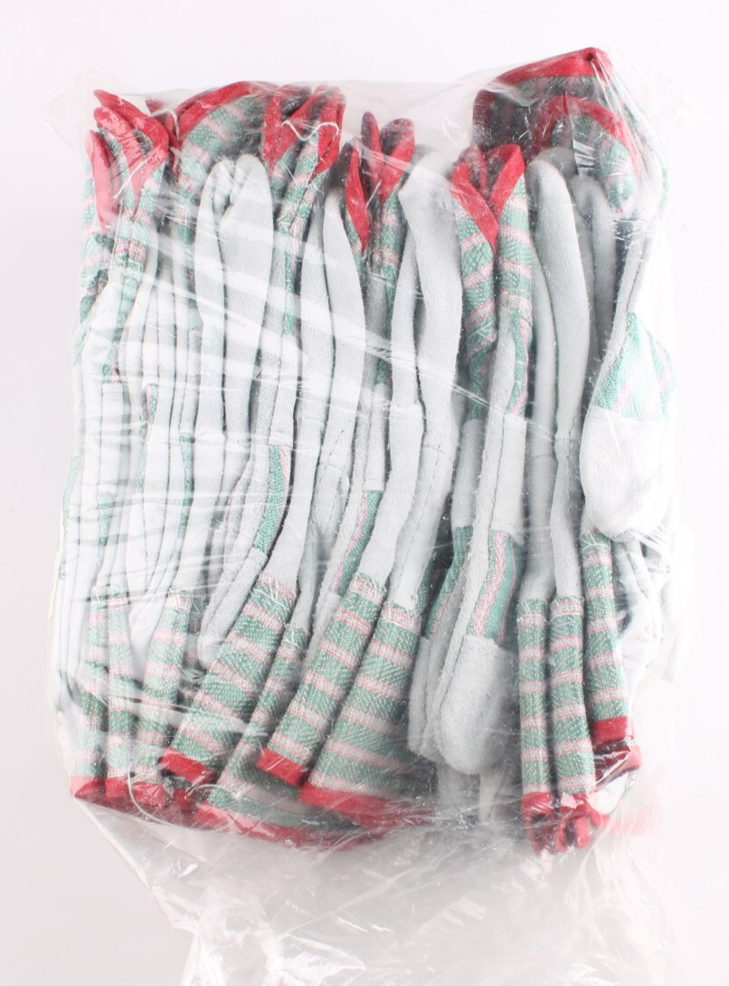 Safety Cuff Industrial Leather Palm 12PK Dozen Gloves Green/Pink Stripe
