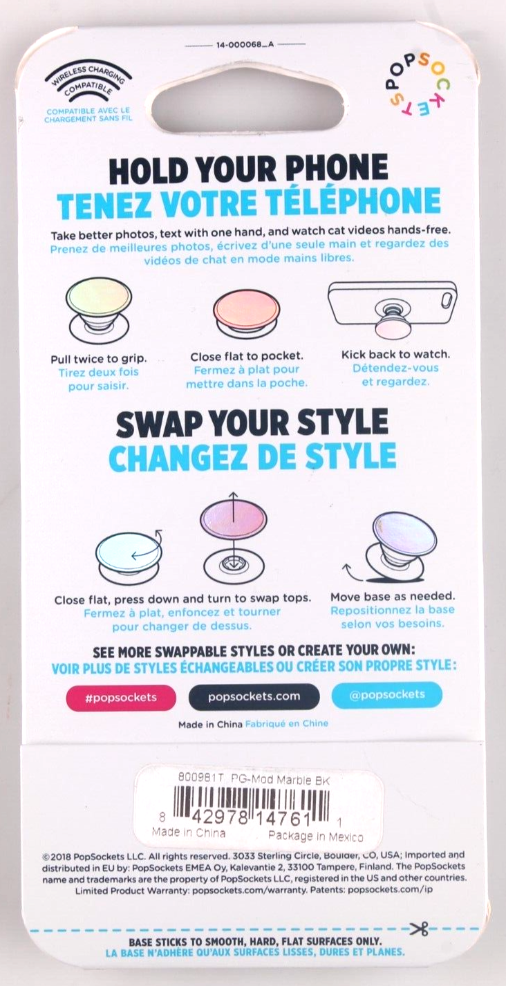 Authentic PopSockets Phone Grip & Stand Mod Marble BK PopGrip w Swappable Top
