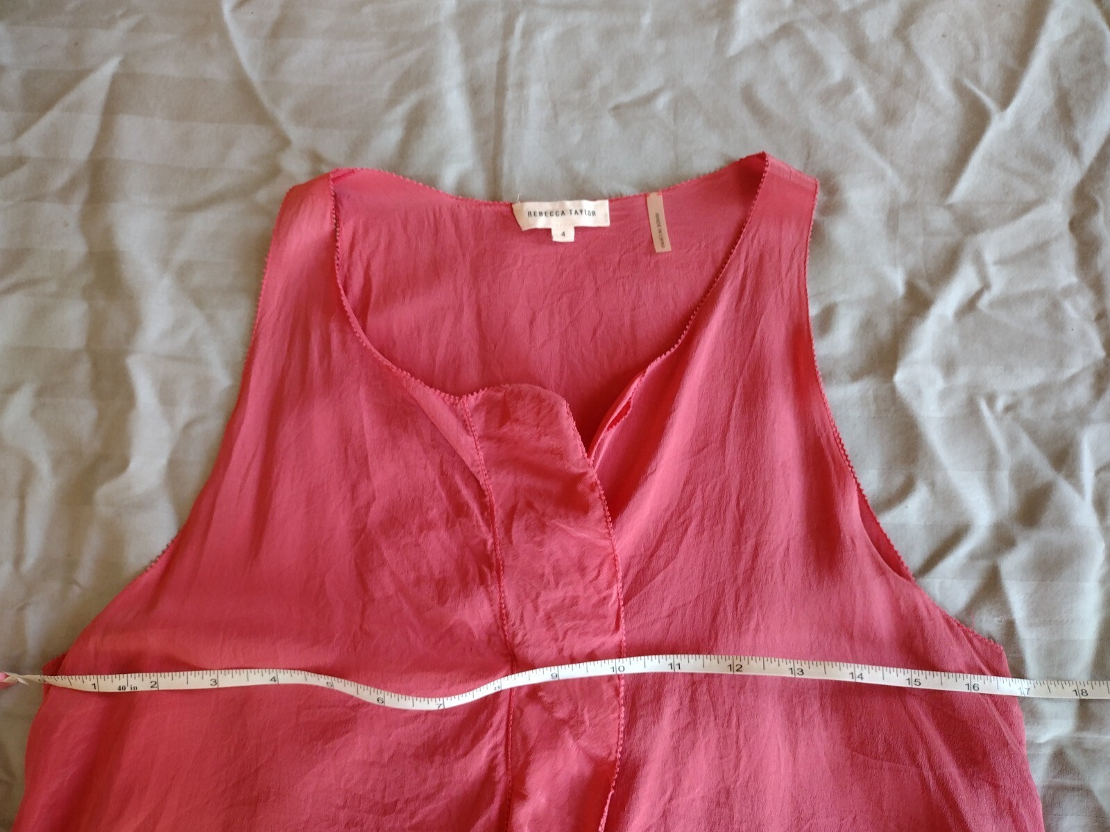 This beautiful Rebecca Taylor tank top is perfect for any summer or spring day. The reddish pink color and solid pattern make it a versatile addition to any wardrobe. The wide straps and relaxed fit provide both comfort and style, while the V-neckline and sleeveless design keep it delicate and perfect for any occasion.