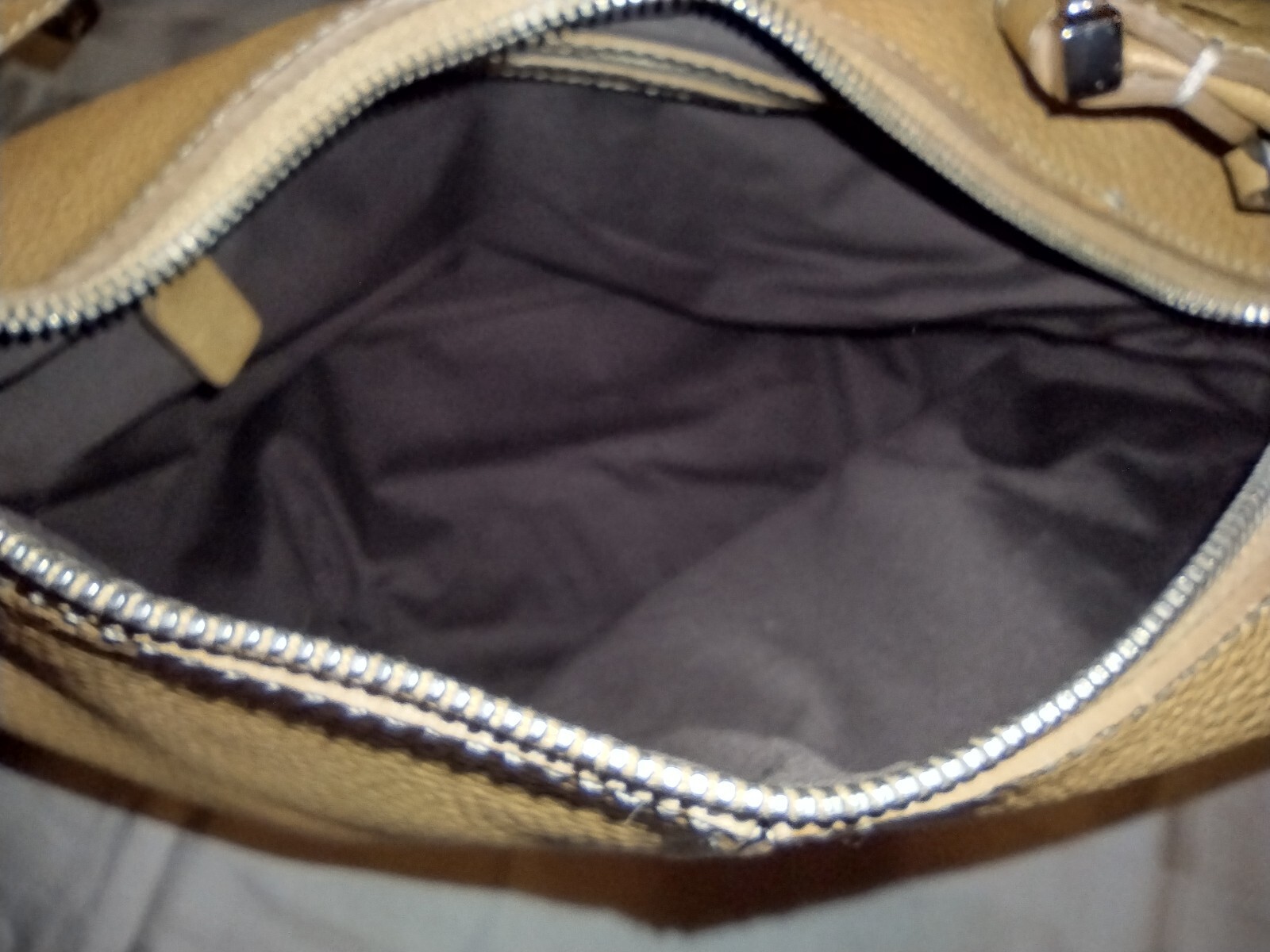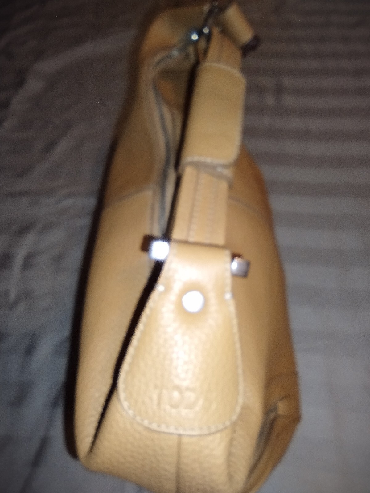The bag's interior is thoughtfully designed with a brown nylon lining, featuring inner and outer pockets to keep your essentials organized. Additional bottom studs provide protection and stability. With its snap closure, this top handle bag offers both security and ease of access. Made in Italy, it reflects a commitment to quality with its rectangle shape and pebbled finish, making it a timeless addition to any wardrobe. Please see photos for further details. Shipping within 2 days of cleared payment. Thanks for visiting.