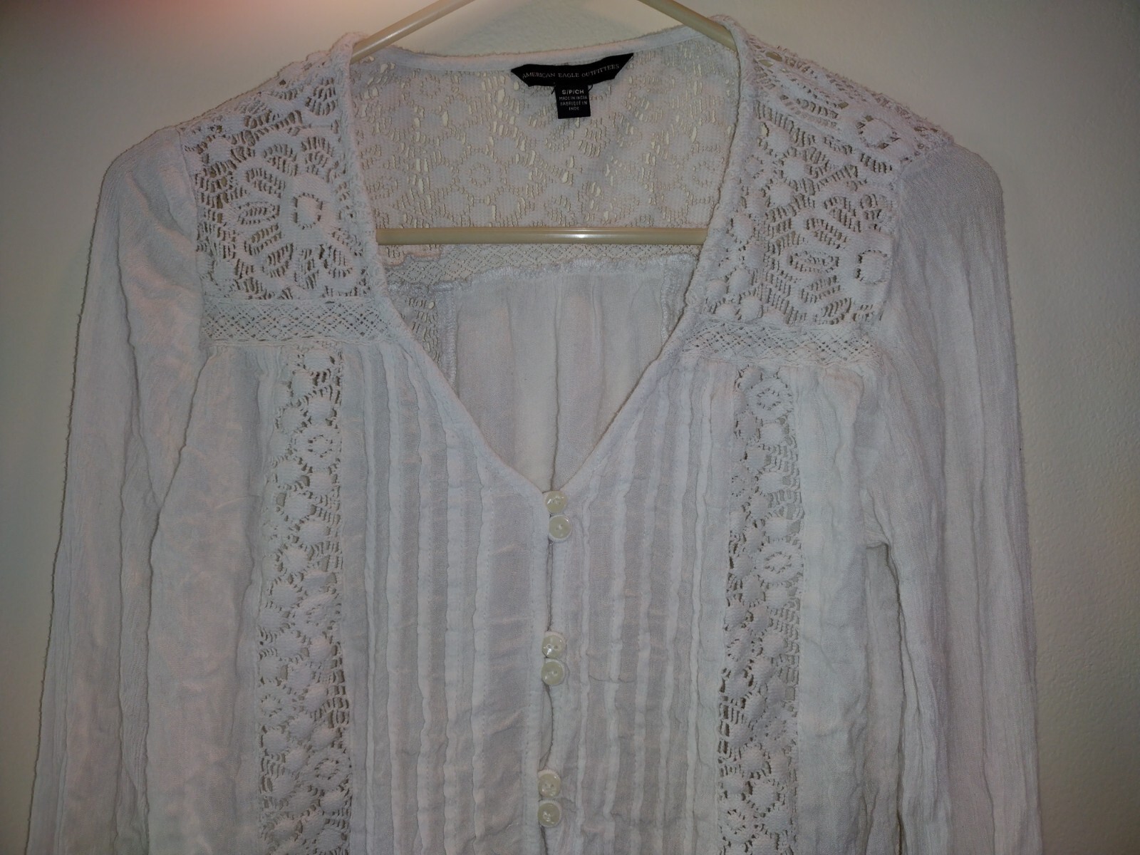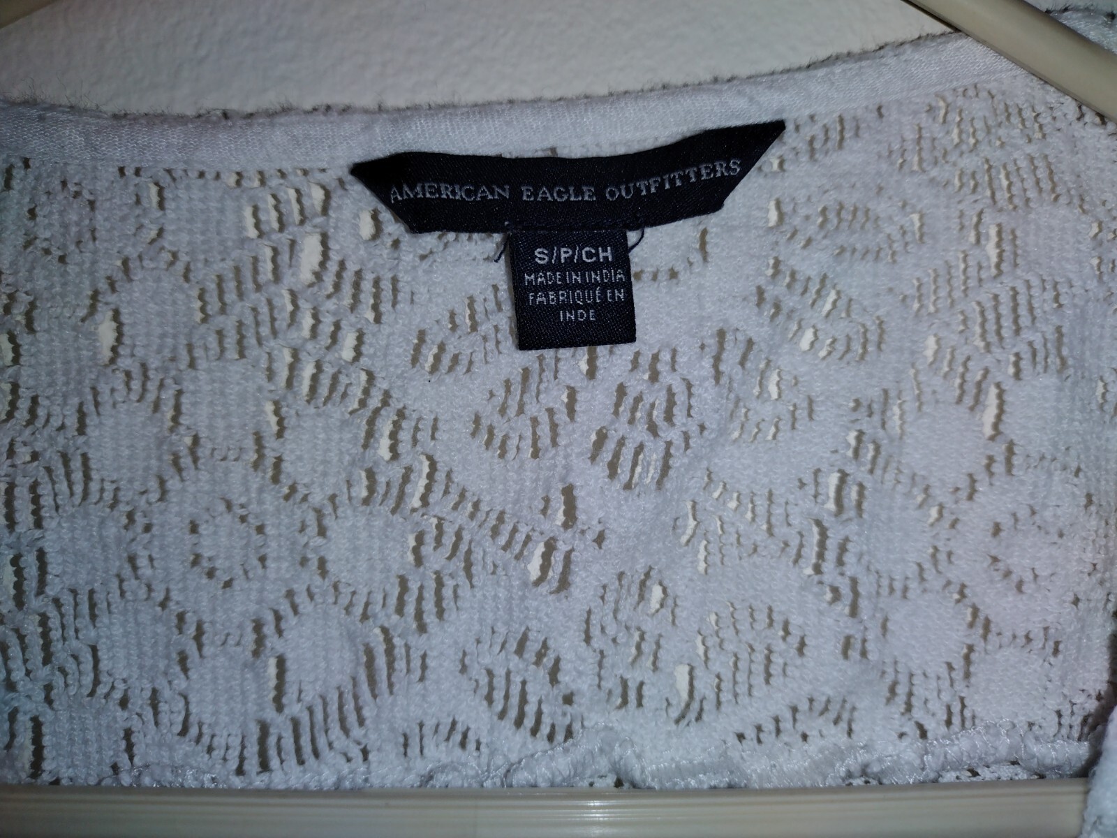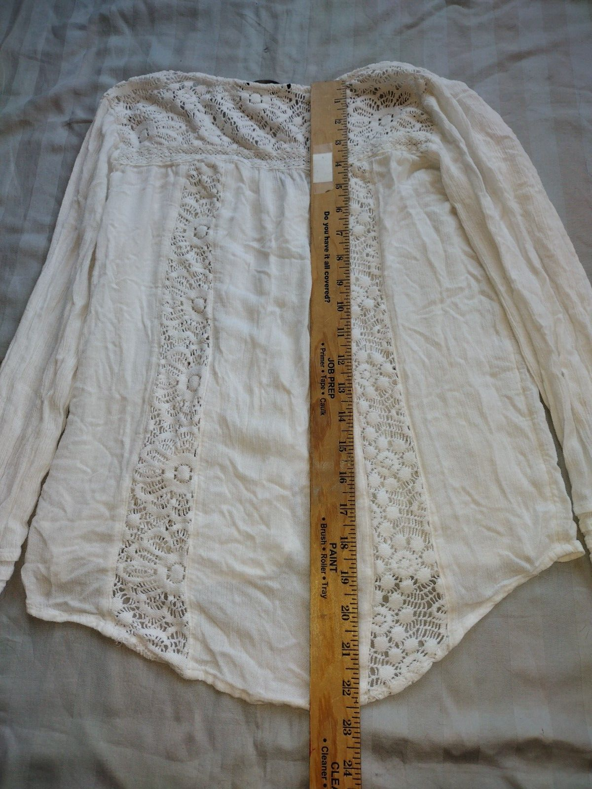 American Eagle Women White Long Sleeve Crochet Lace Pullover Top Size S/P/CH EUC