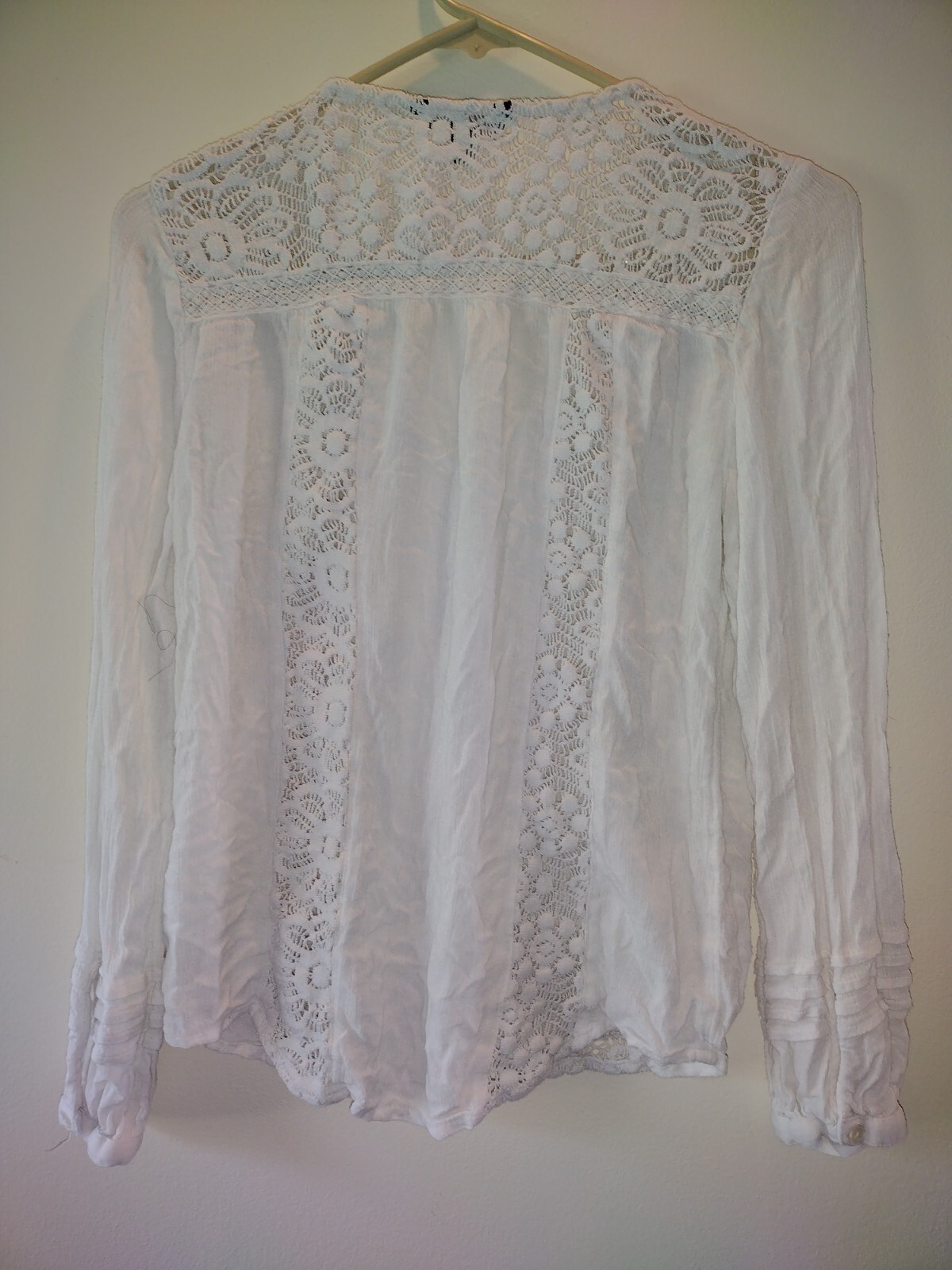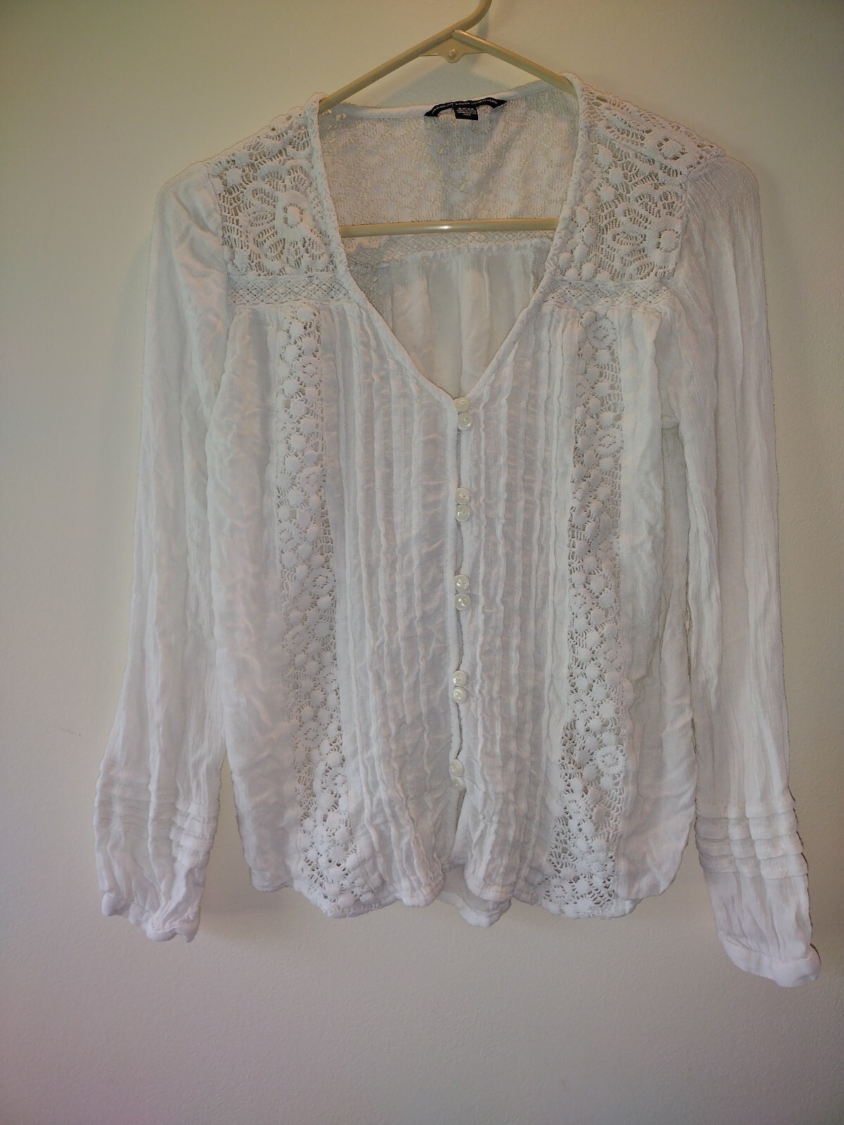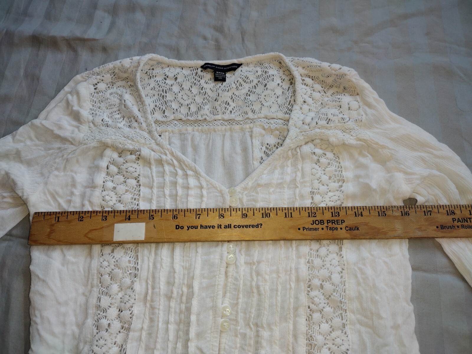 American Eagle Women White Long Sleeve Crochet Lace Pullover Top Size S/P/CH EUC