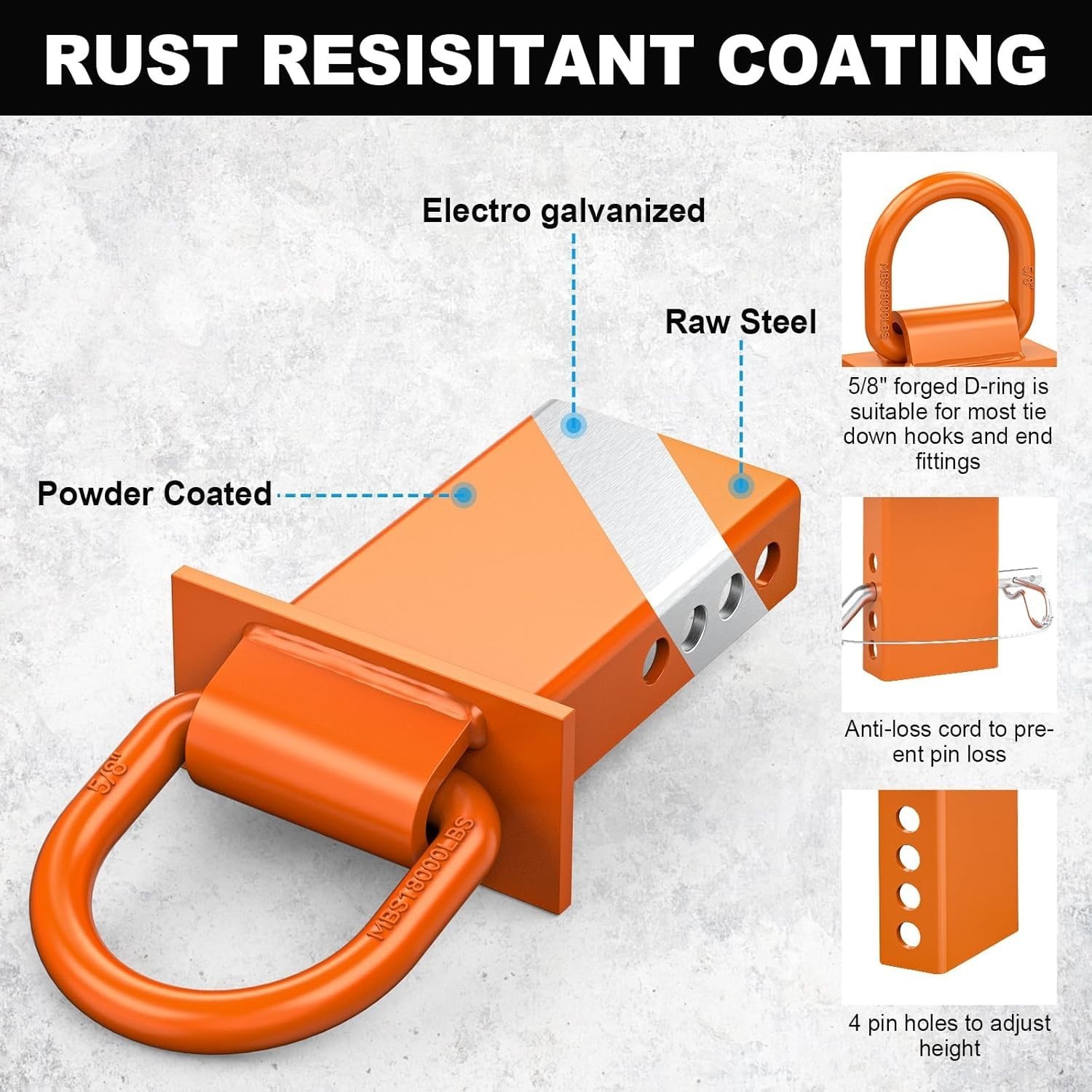 Achieve the perfect fit for your current load with our stake pocket D-rings.Each comes with hitch pin, complete with a locking cotter pin and 4 pin holes for precise height adjustments.