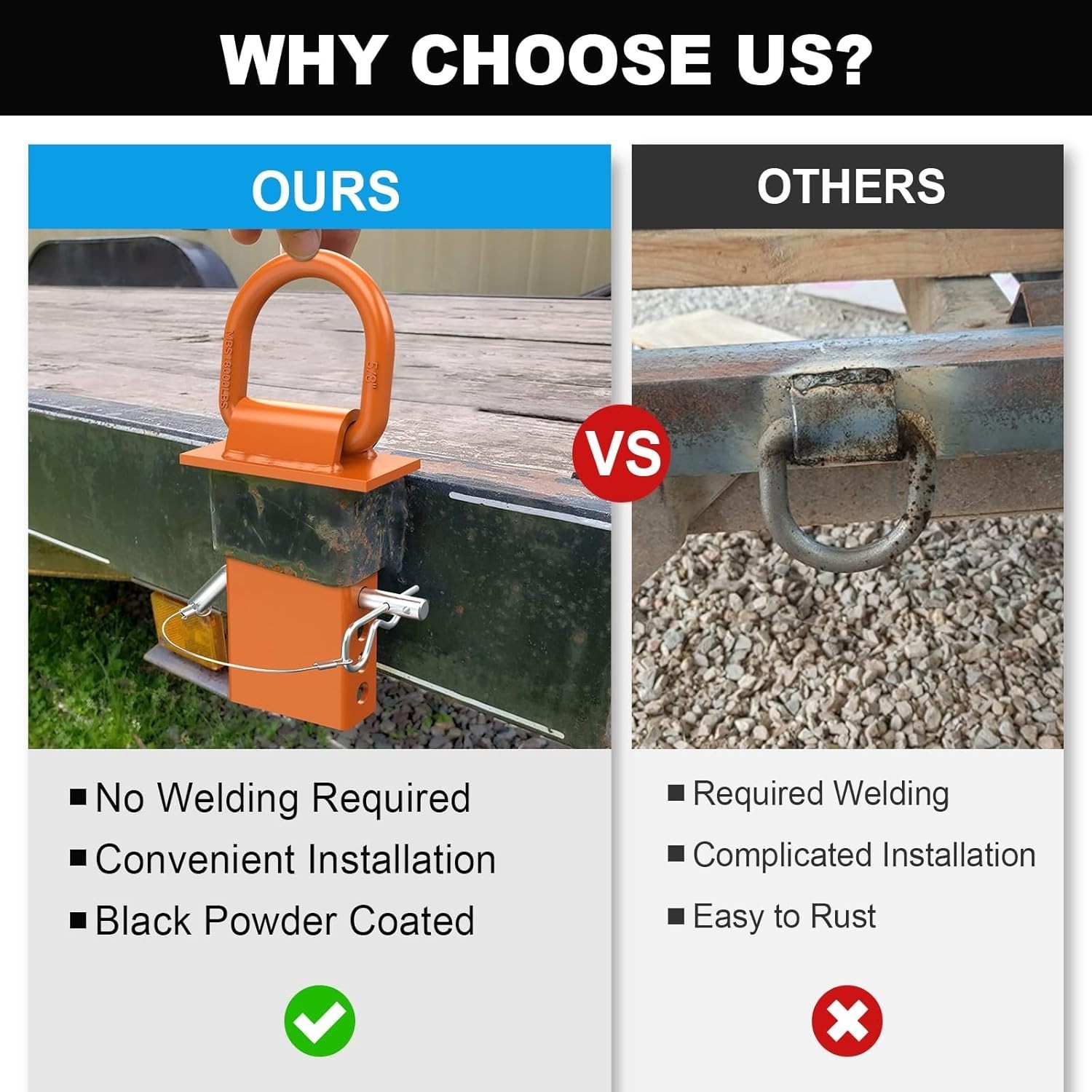 This utility trailer D ring can be easily installed into embedded weight slots on the sides of trailers; fit for most stake pockets, flush or outside stake pockets.