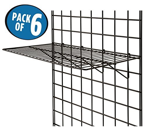 Use these Black Wire Grid Shelves to increase the amount of space available for storing your products. These shelves easily slip onto wire grid panels. Furthermore, these wire shelves are a perfect fit for any wire grid panel and create interesting displays, attracting customers, helping to close the sale. Sold in a set of 6, you will be able to utilize these grid panel shelves in a multitude of ways- great for any type of retail stores or for organizing at home.