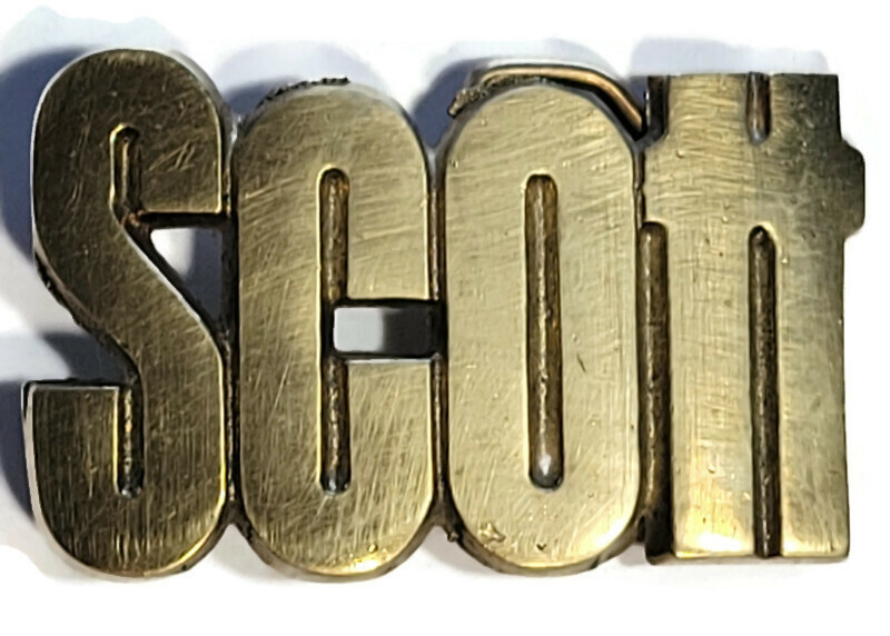 Name 'Scott' Solid Brass Metal Belt Buckle R.O.C.Taiwan 4753 1970s 2" X 3.5"