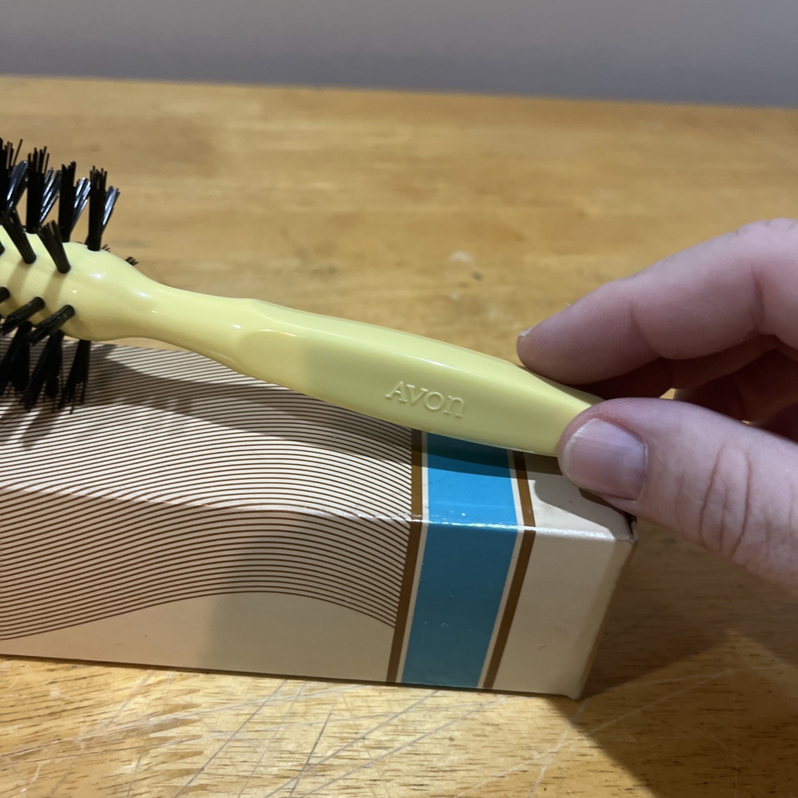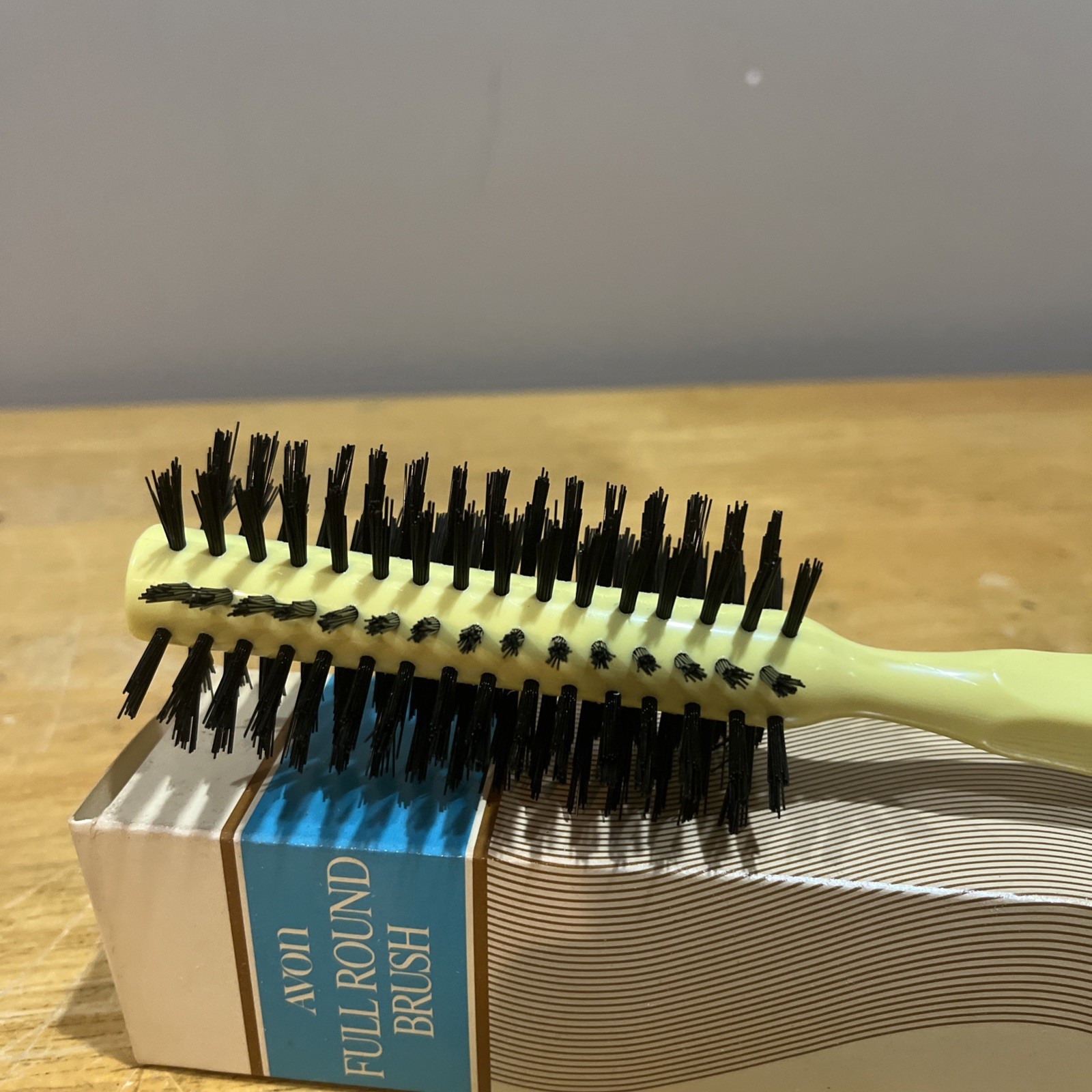 Vintage Avon Full Round Brush Yellow Black Bristles New In Box Unused Hair Brush