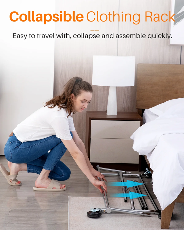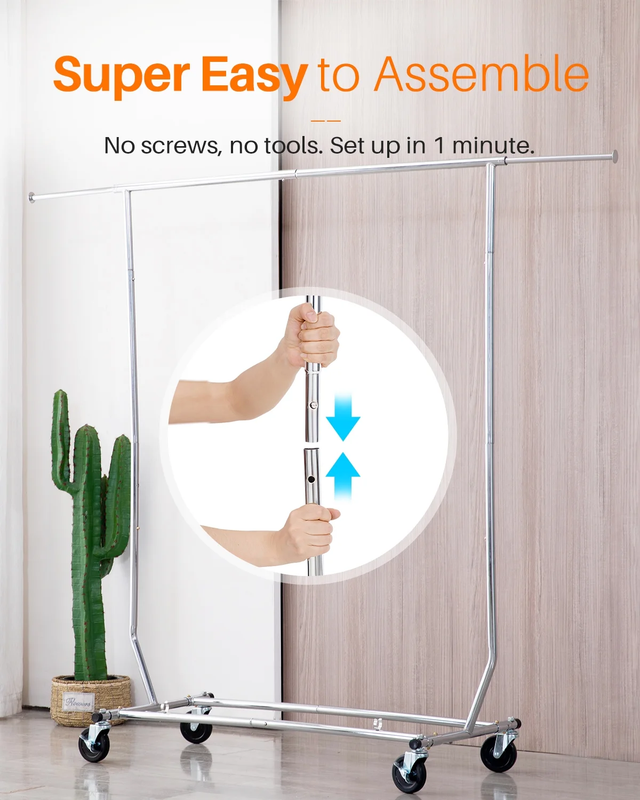 ?Collapsible Portable?- This rolling clothes rack is easy to set up and disassemble with tools provided. Ideal for a dressing room, attic, storage room, or even retail shop. When you no longer need it and want to free up floor space, you can fold and store it in a closet or under your bed.