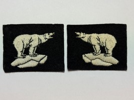 This is the third version of the Polar Bear patches. Cotton embroidery on black wool base. Displays honest age and does not react to ultra violet light, nice original Polar Bear Patches. These were removed from a collectors display board.
