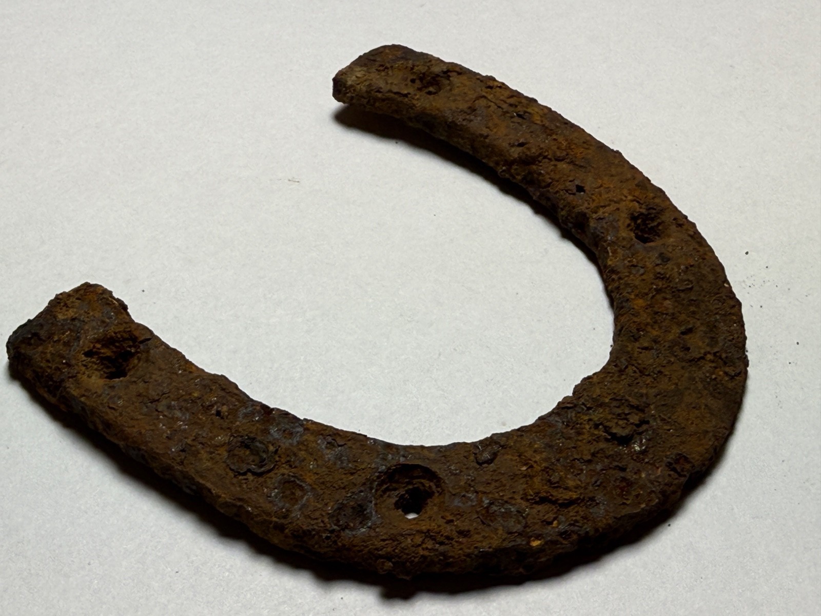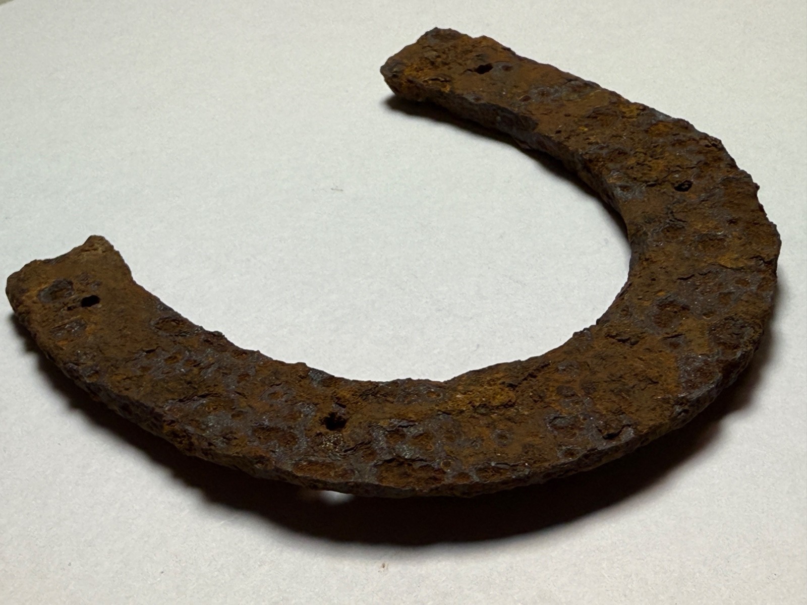 This CS brogan iron heel plate and heel was worn on the soldiers brogans or boots. These plates were used to try and sustain the life of the soldier?s shoes, because once they were worn out, they didn?t know how long it would be before they could be replaced. These unique items were not a regulation issue but sold by the camp sutlers. This example was recovered in a Confederate camp in Aquia Creek, Virginia.