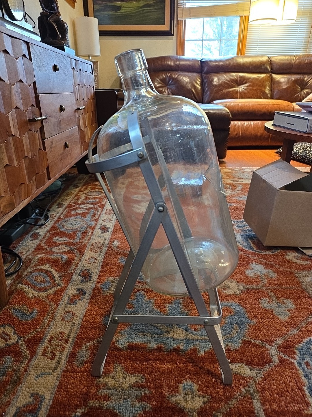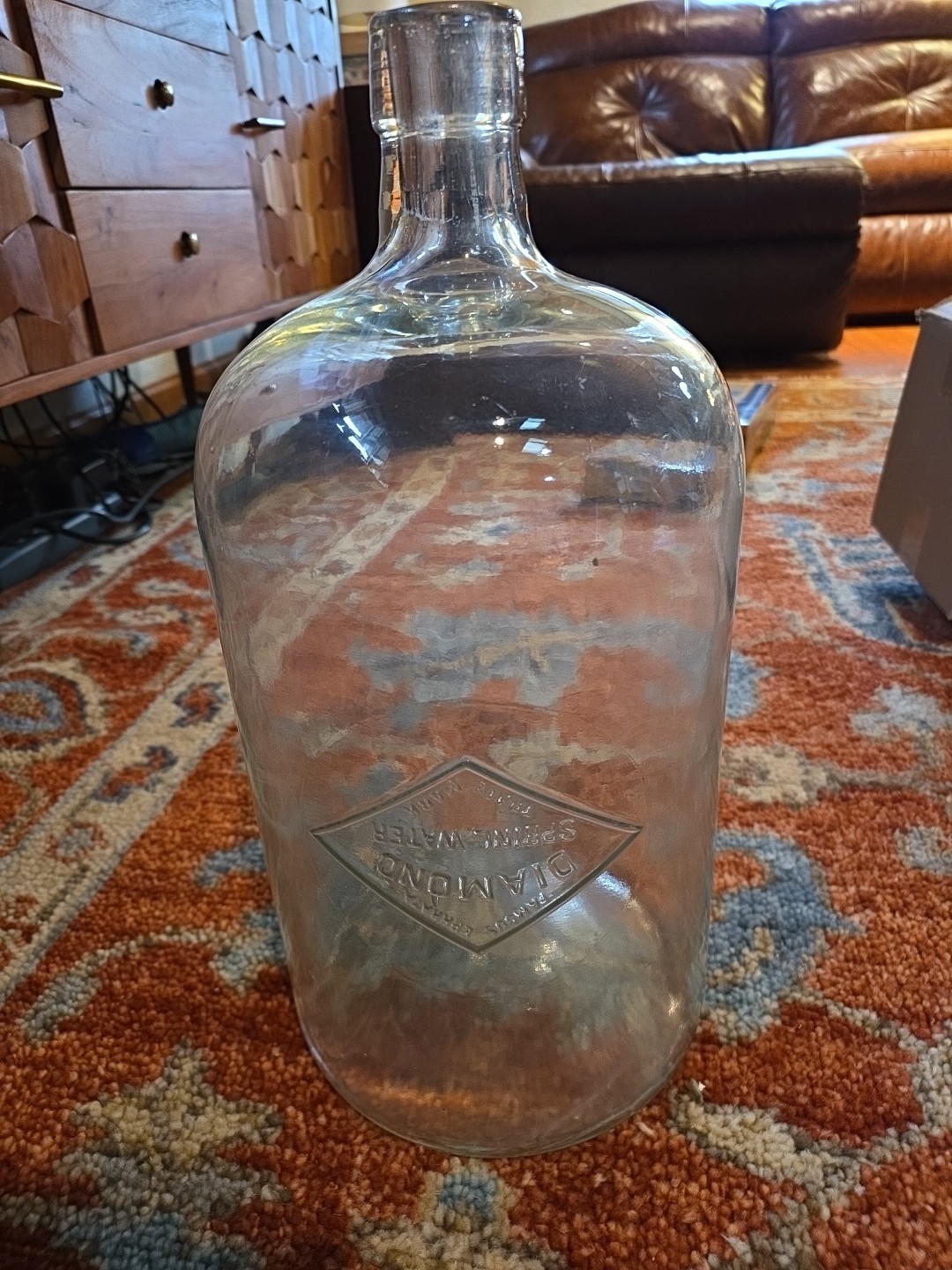 Vintage 3 Gallon Glass Water Bottle Jug Diamond Spring Water Ephrata PA & Stand