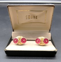 Vtg Cufflinks Swank Art Nouveau Pink Owl Eye Gold Tone Orig Box Nice Unique