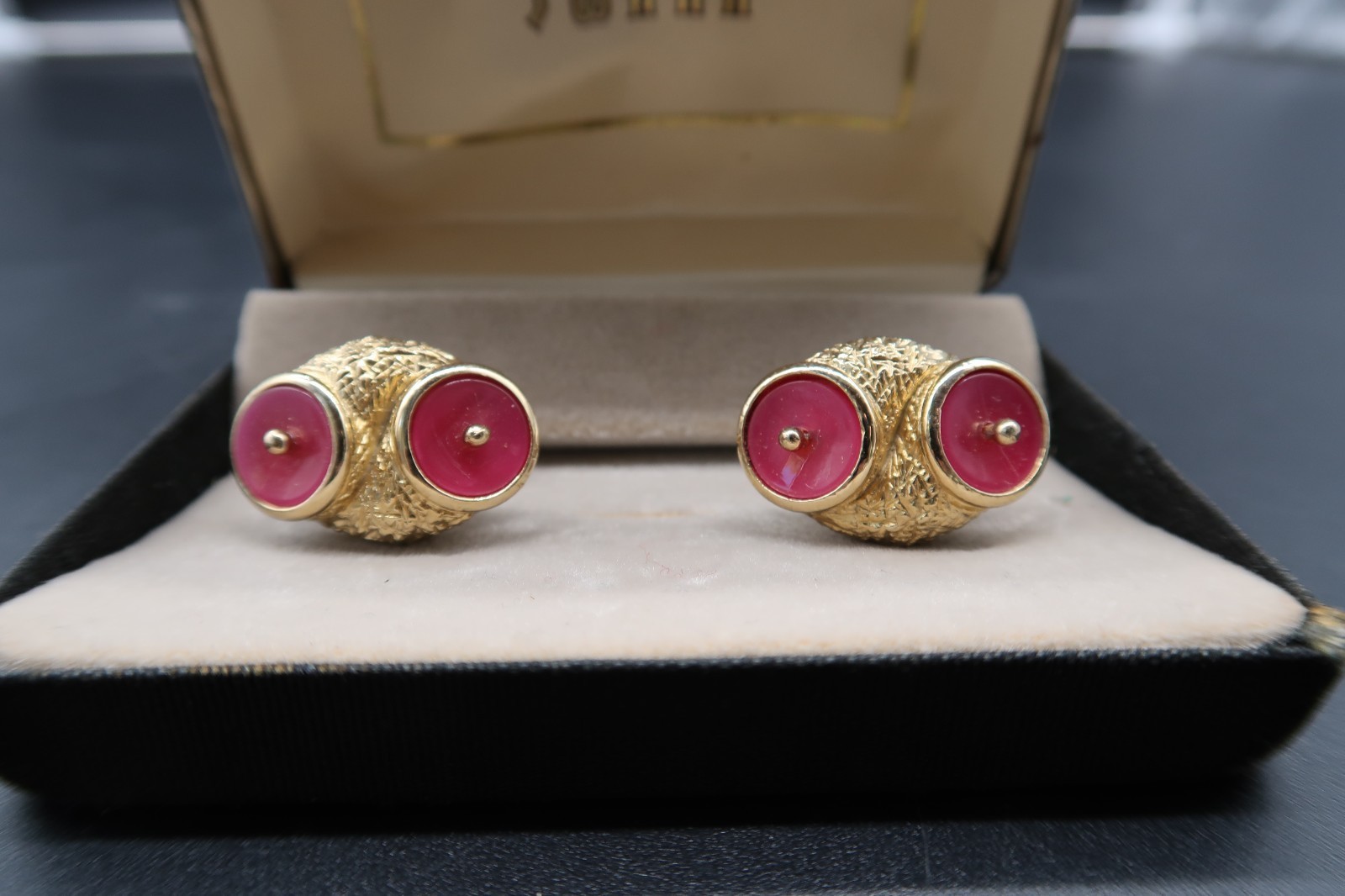 Vtg Cufflinks Swank Art Nouveau Pink Owl Eye and 50 similar items