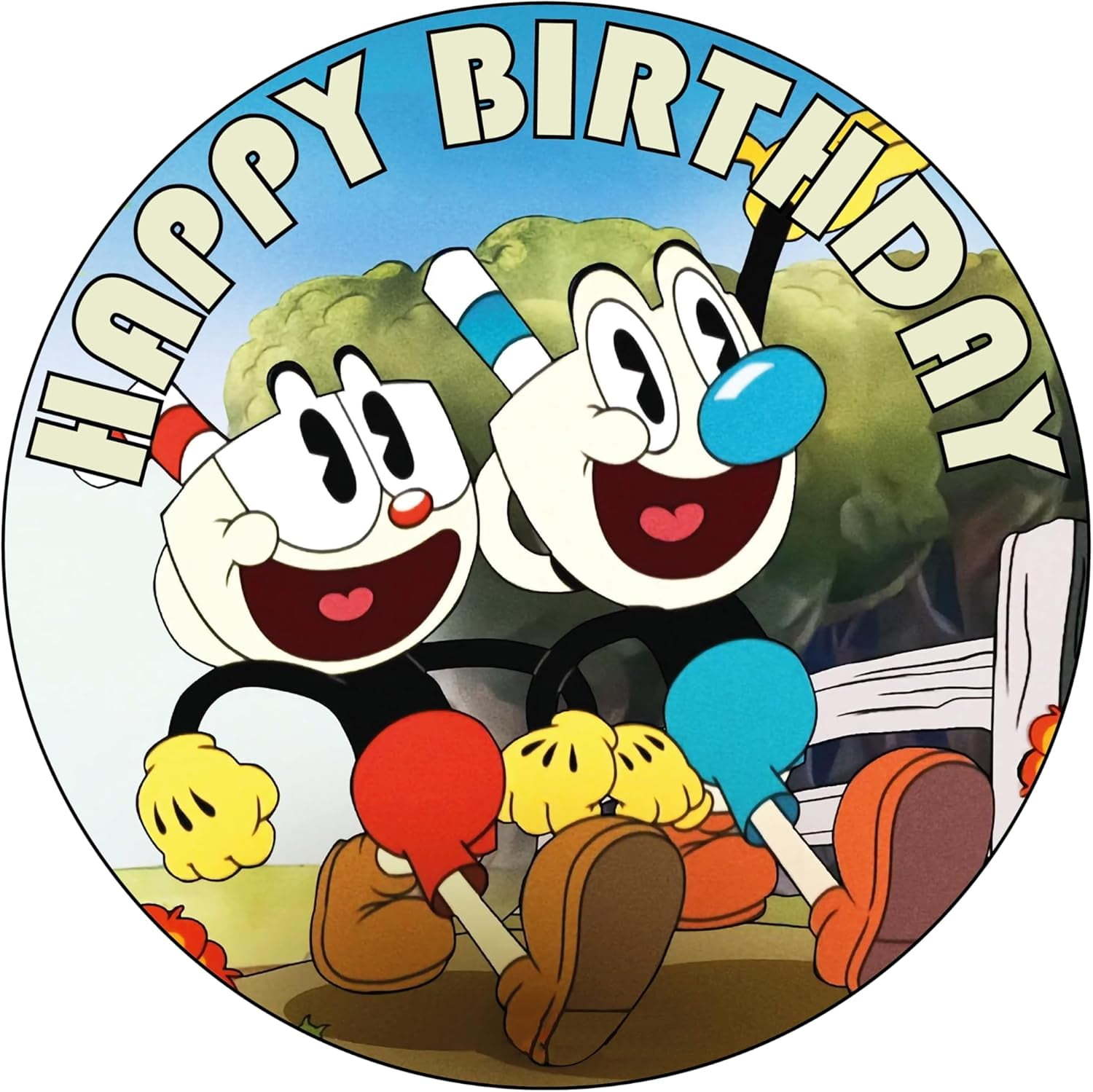 6" Round Pre-Cut Cuphead and Mugman Edible Image Cake Topper By Party Poppin Cak
