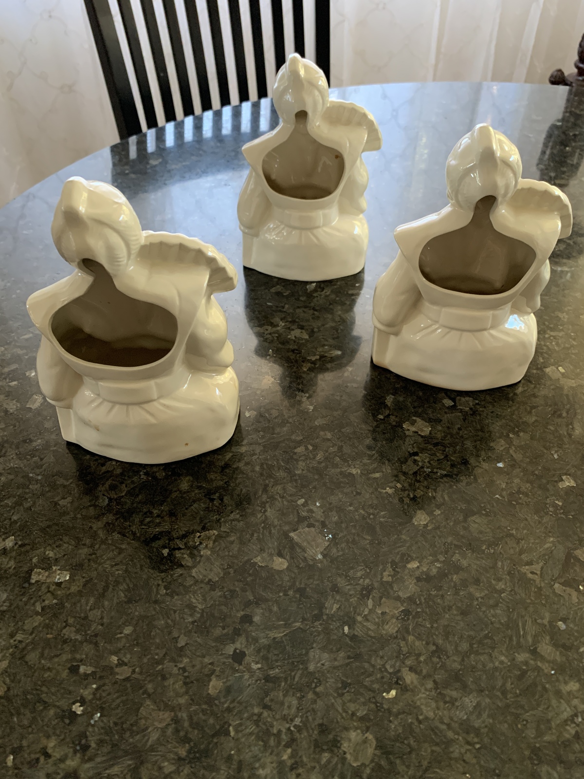 Vintage - White Ceramic "Buddha" style Mugs = sold as a set of 7 pieces