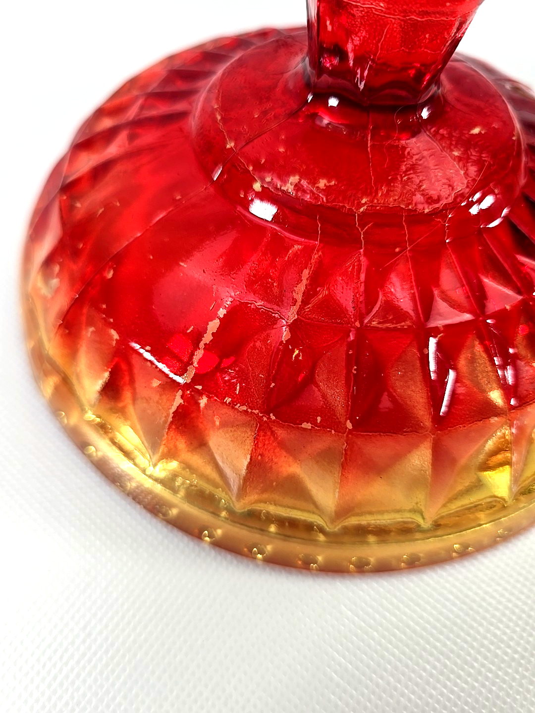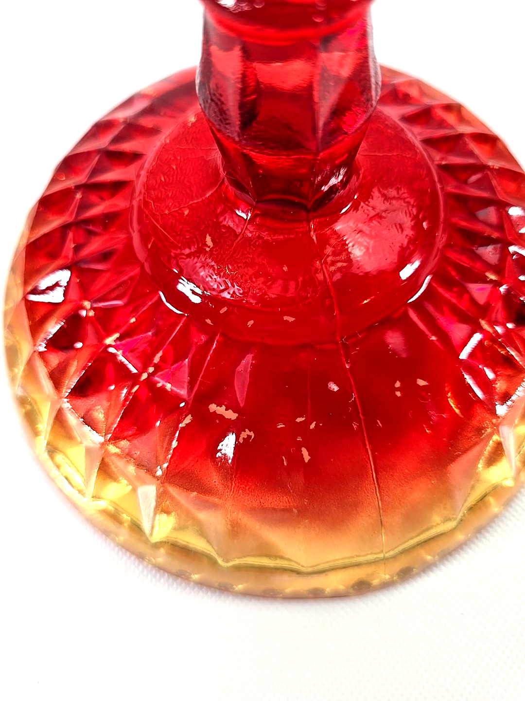 ? Brilliant red to amber sunset color glow flared rim mid century barware display