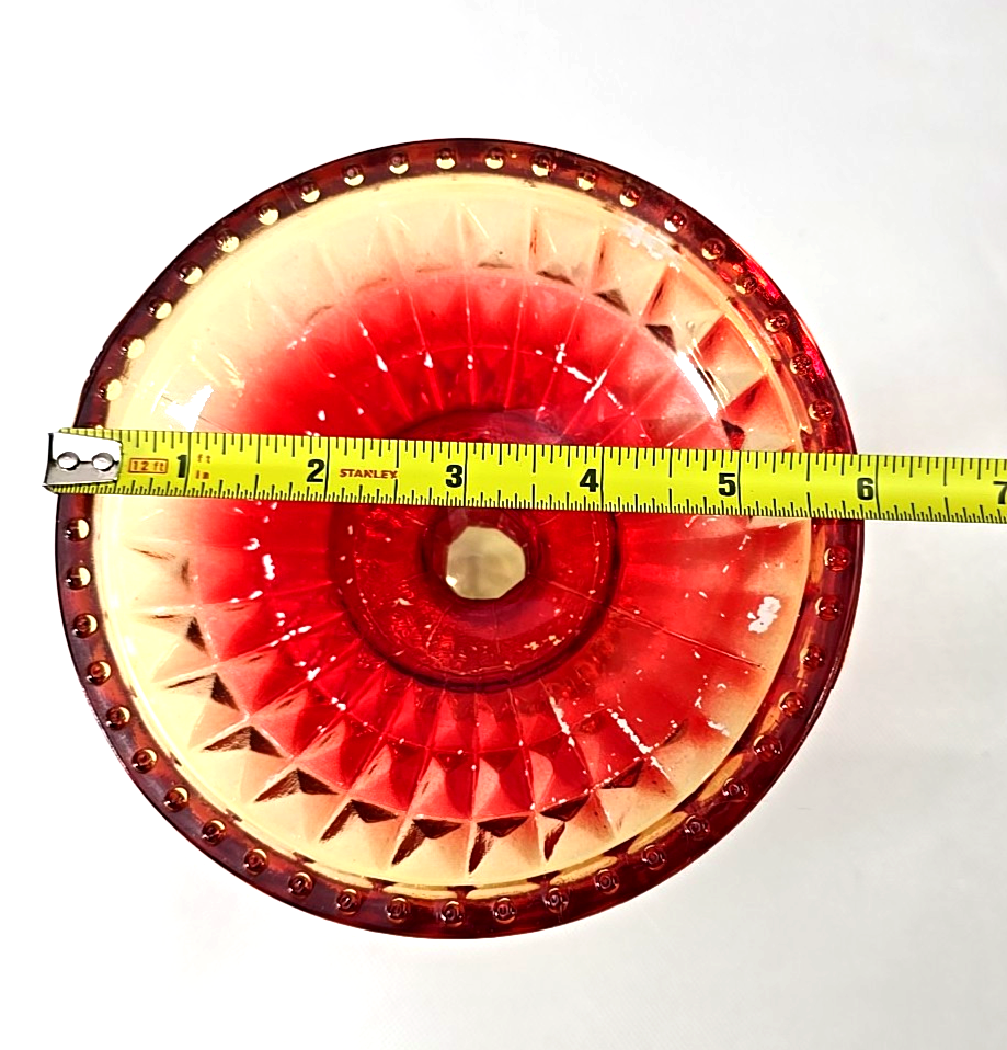 Vintage Amberina Glass Pedestal Compote Candy Dish 5.5” Tall 6” Dia Footed USA