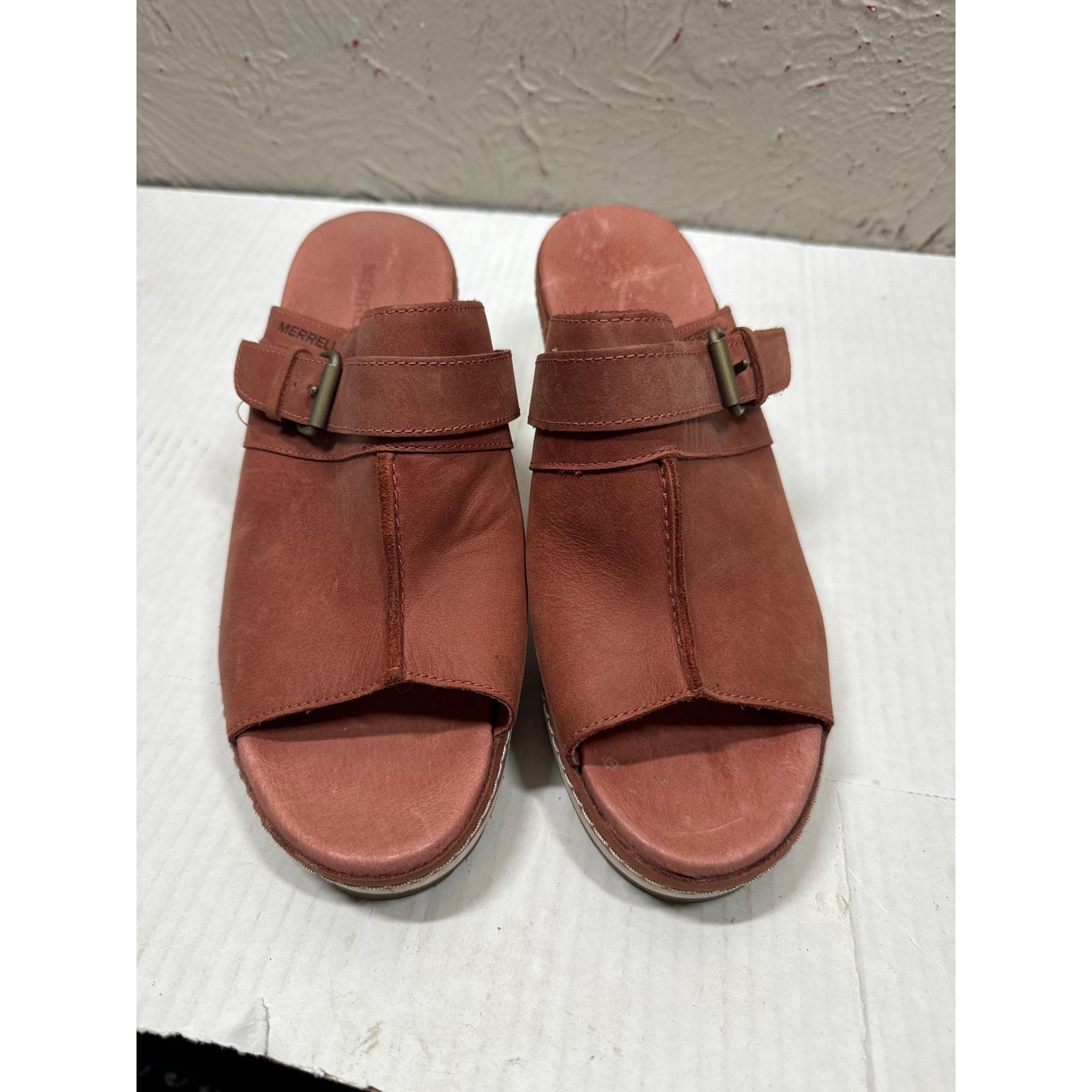 Merrell Womens Leather Slide Open Toe Clogs Sandals Heels Size 8