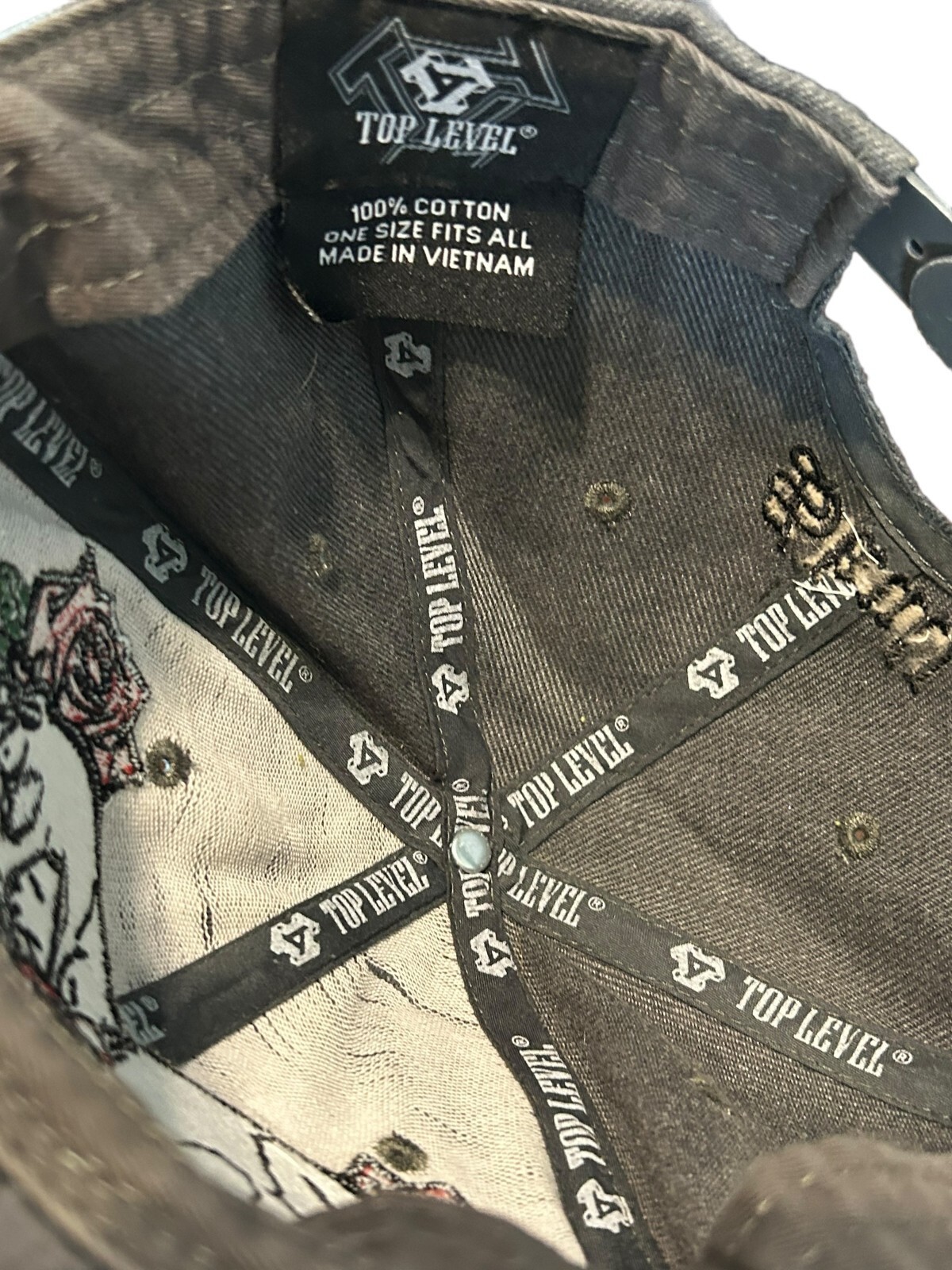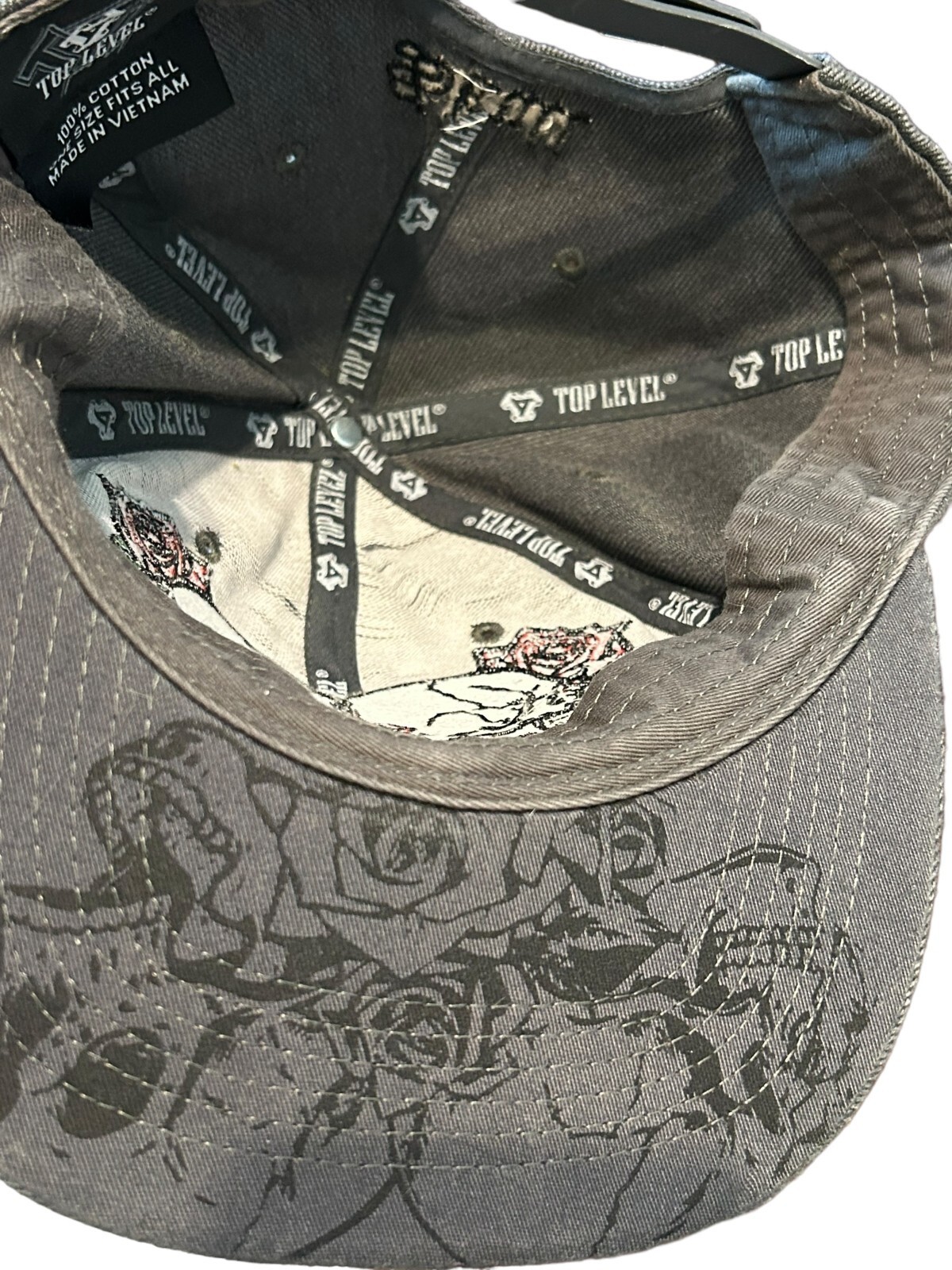 Top Level Accessories Skull Roses Grey Snapback Cap Hat OSFA