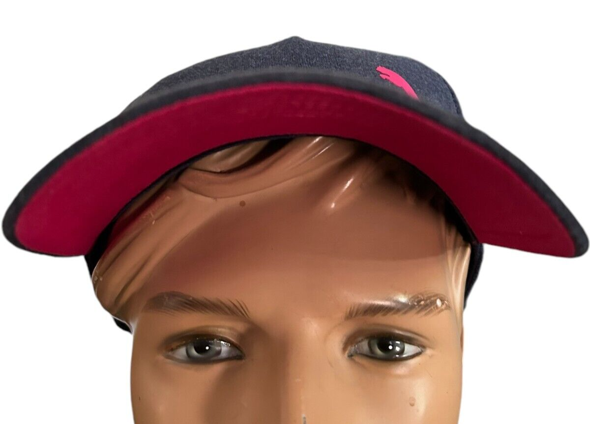 navy blue cotton blend PUMA hat with pink evercat logo hook loop adjustable OSFA