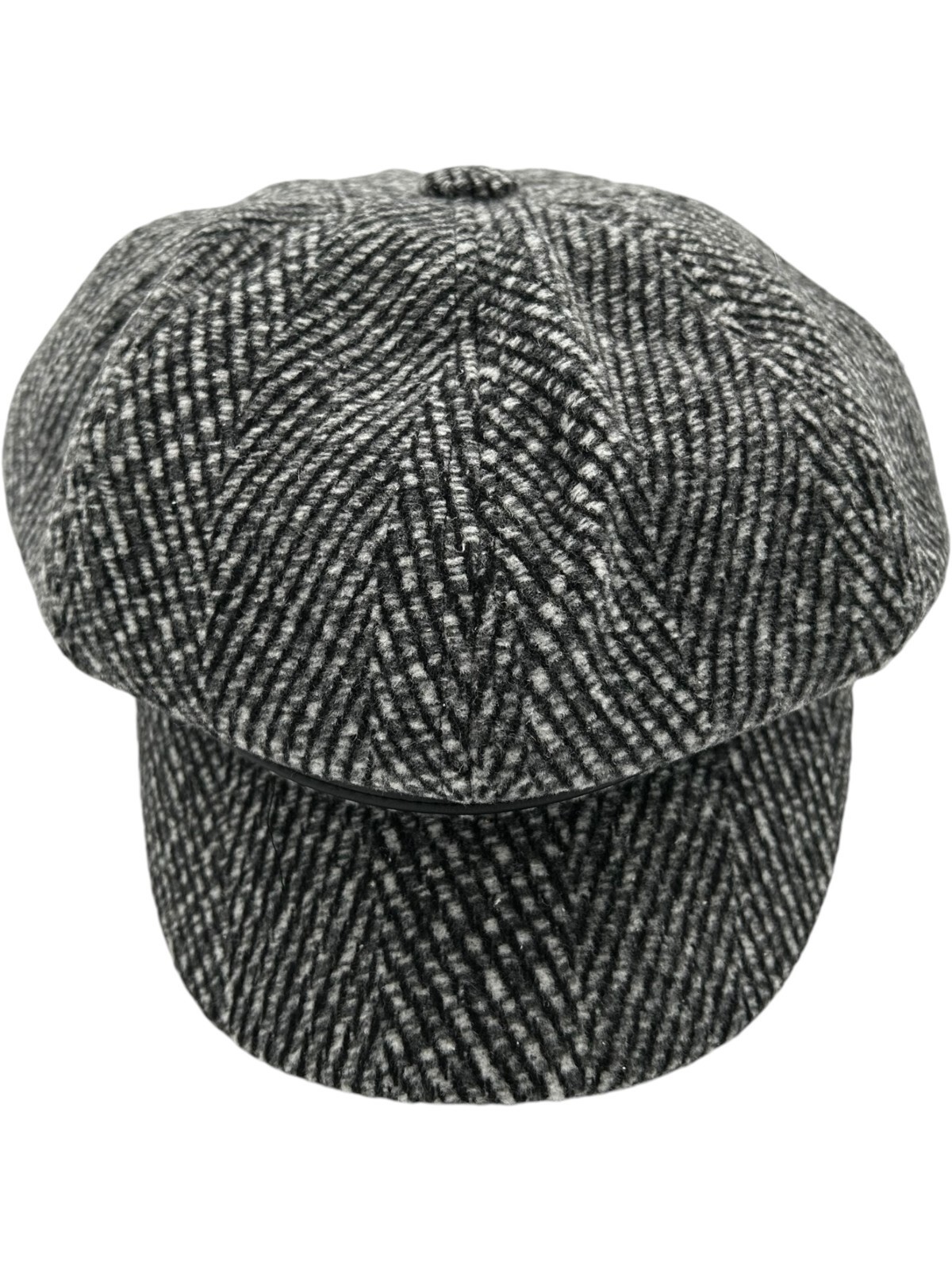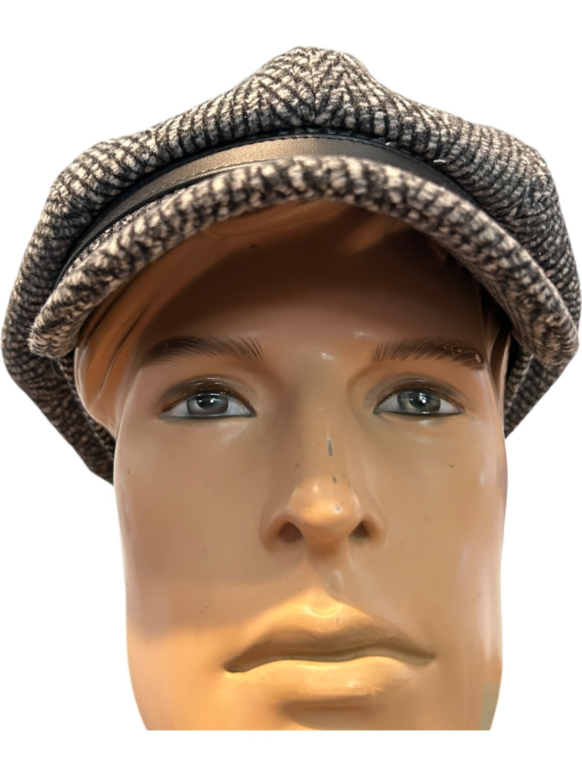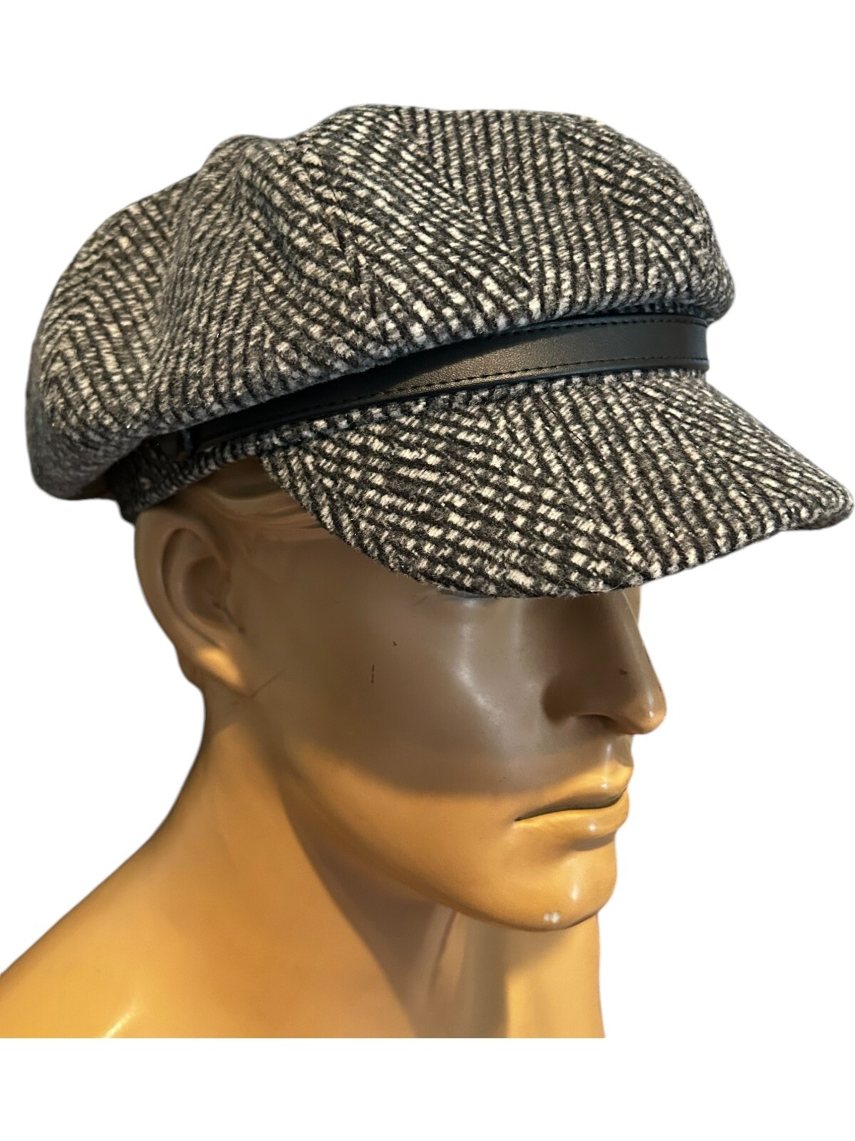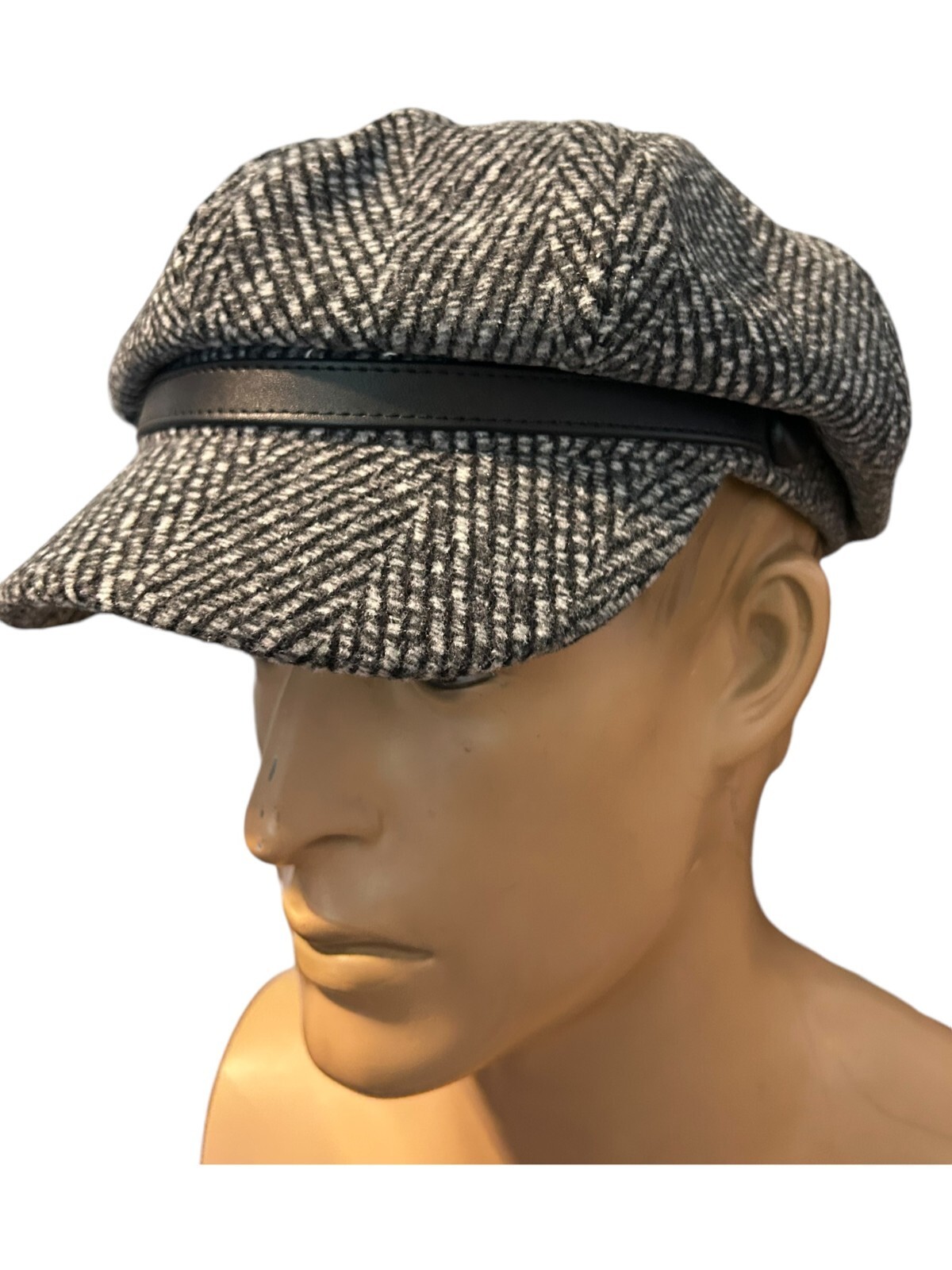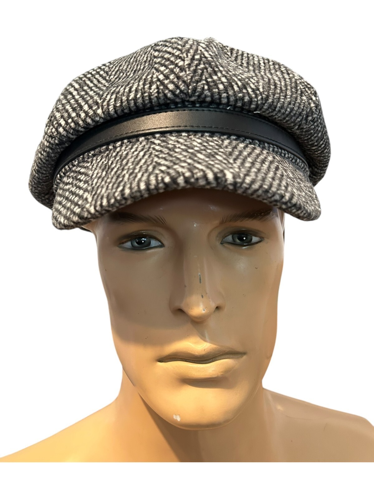 A leather band smartens the look of this classic tweed baker-boy hat finished with a curved brim.