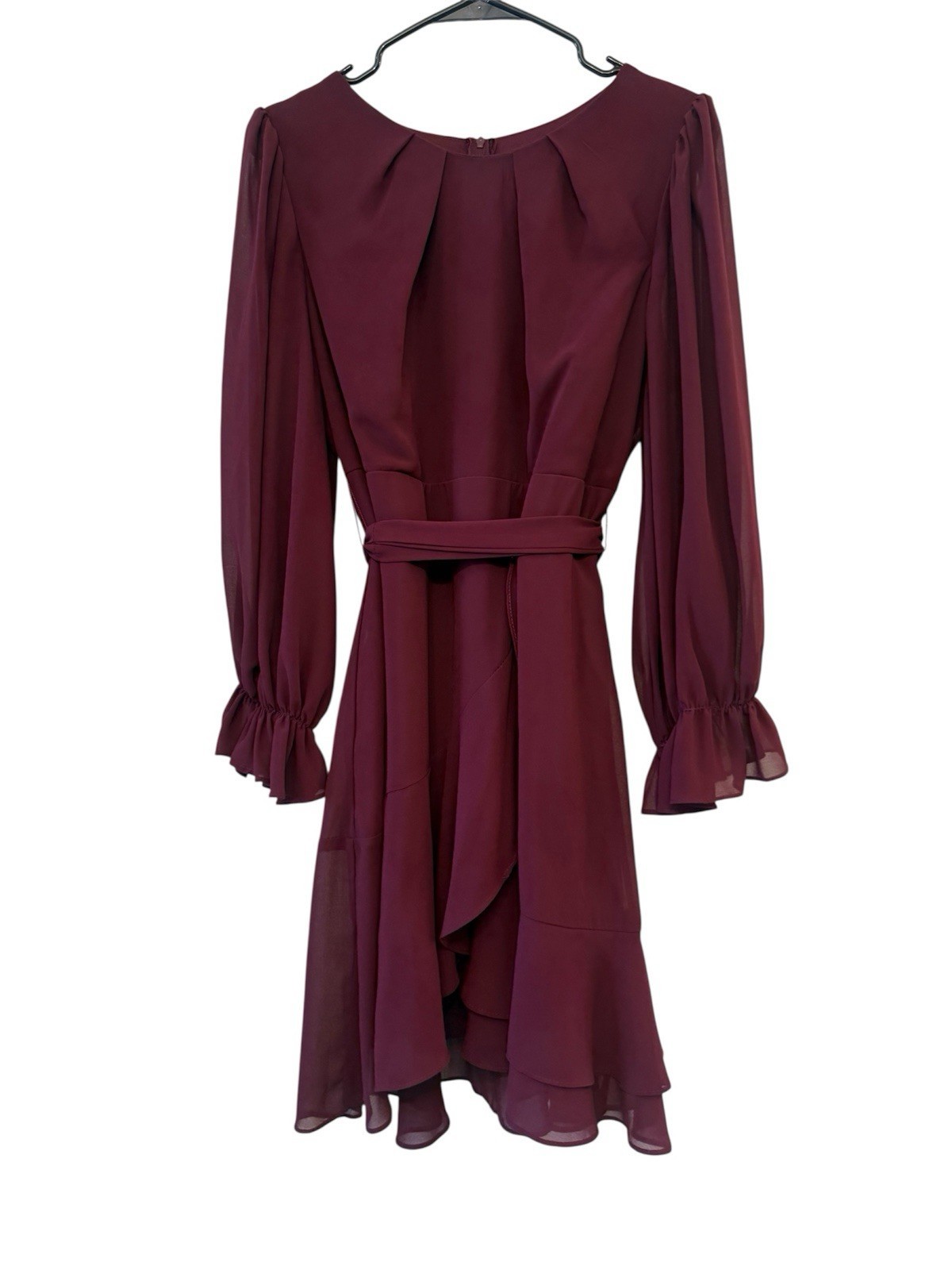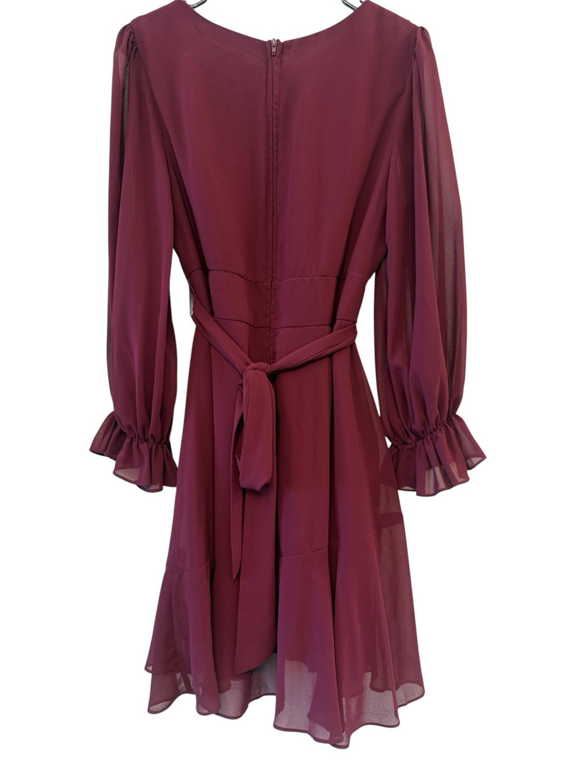 B. Darlin Women's Burgundy Curved Hem Long Sleeved Dress, Size 13/14