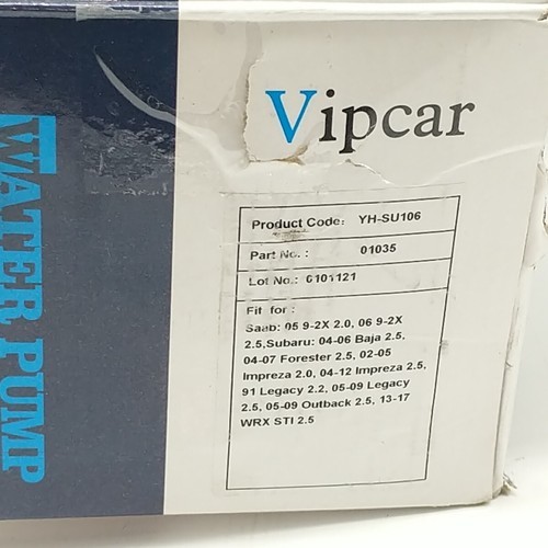 Installation is easy and requires no drilling or modifications. This engine water pump is compatible with Subaru EJ257 and EJ205 engines found in Impreza, Legacy, and Baja models. Don't settle for a mediocre cooling system, upgrade to the VIPCAR 01035 water pump today.