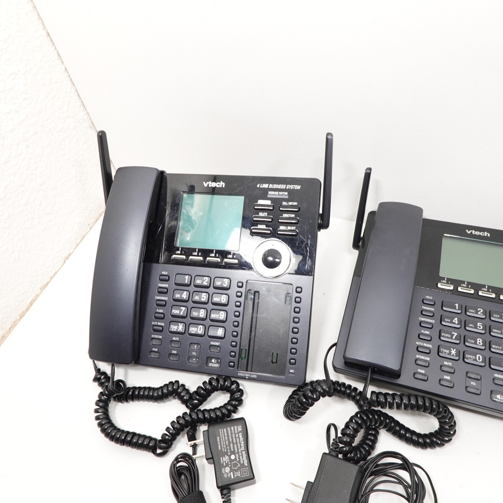 Pair VTech AM18447 4-Line Business System Phones w/ Power Adapters - Read