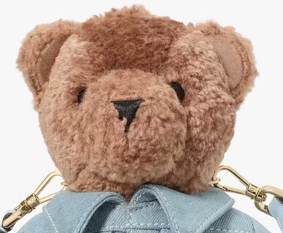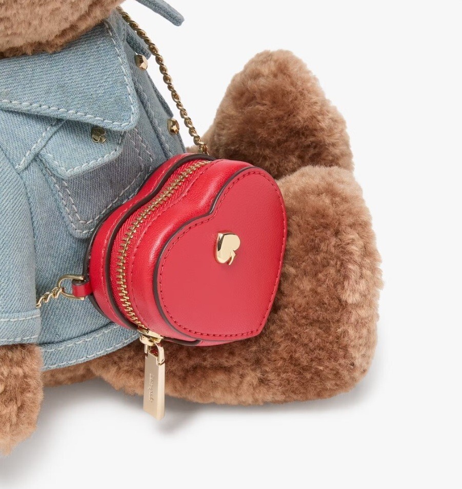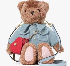 Kate Spade Denim Katey Bear Crossbody Bag, Plush Teddy Bear Bag with Heart Coin Pouch