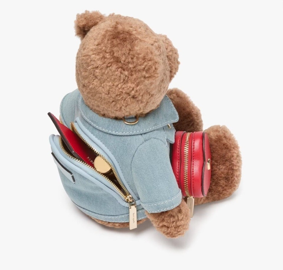 This whimsical and collectible crossbody bag by Kate Spade features an adorable teddy bear design, perfect for fashion lovers and collectors alike.