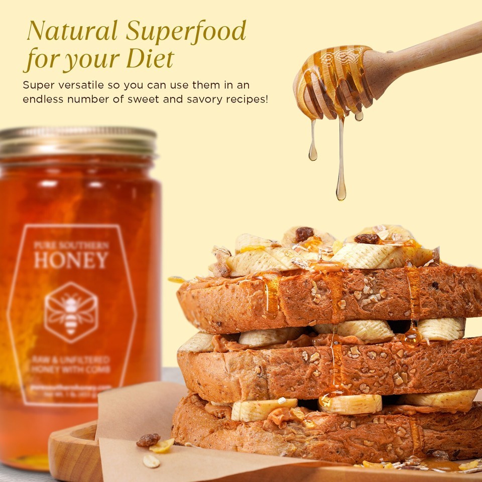 Raw & Unfiltered Honey with Comb 1lb. by Pure Southern Honey, New 2025 Crop10...