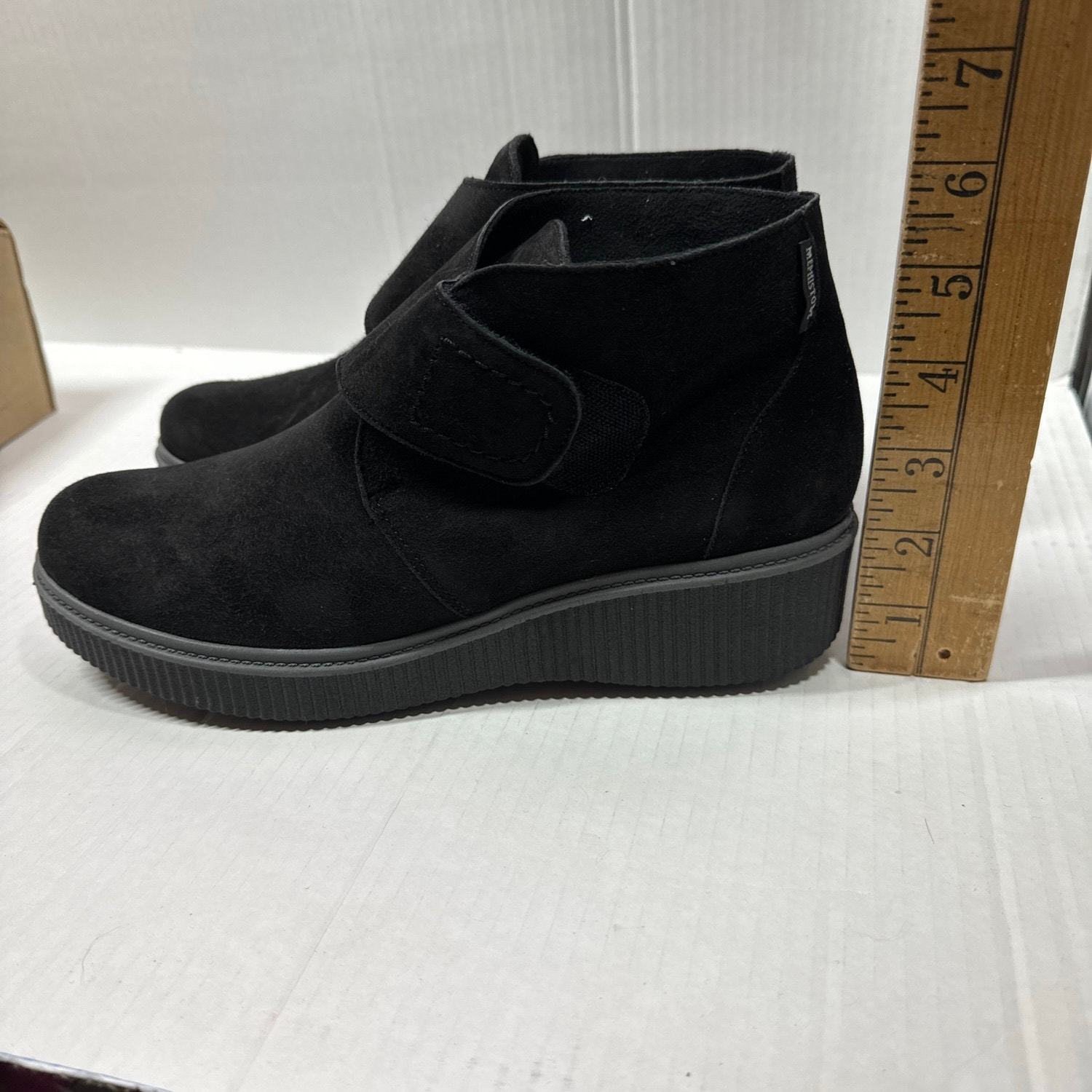 Mephisto Black Suede Wedge Ankle Boot Hook Loop Closure Women?s Size 8.5