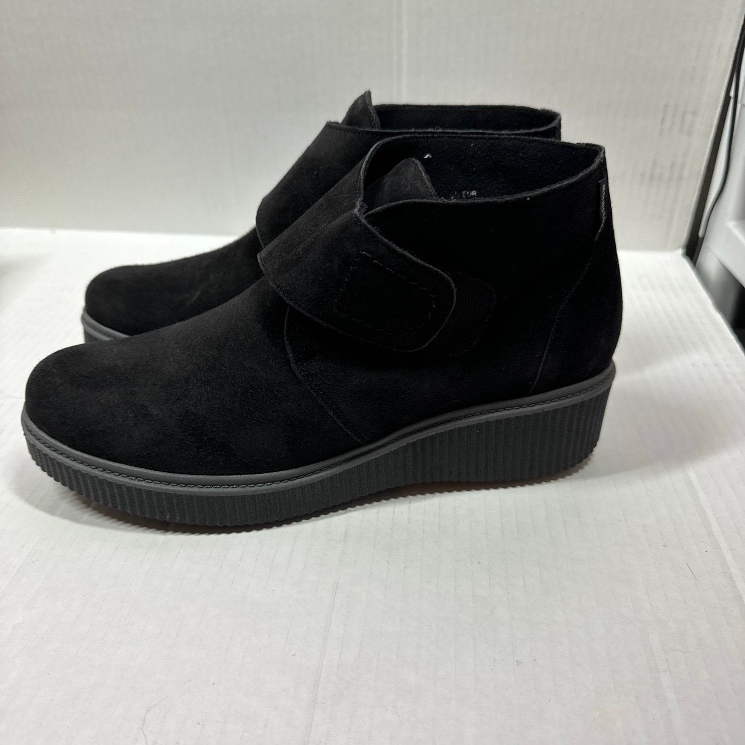 Mephisto Black Suede Wedge Ankle Boot Hook & Loop Closure Women’s Size 8.5