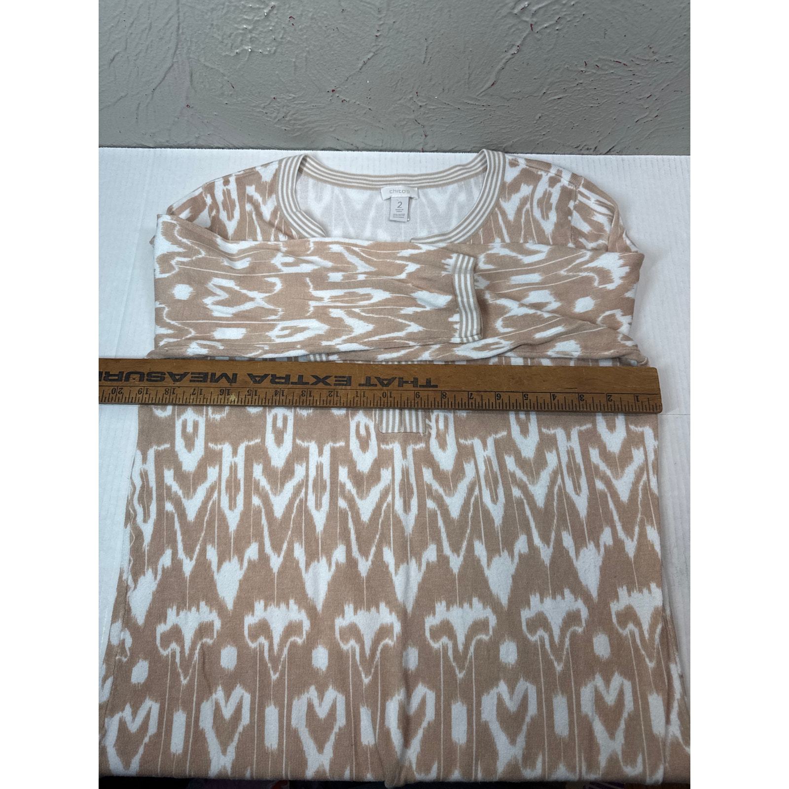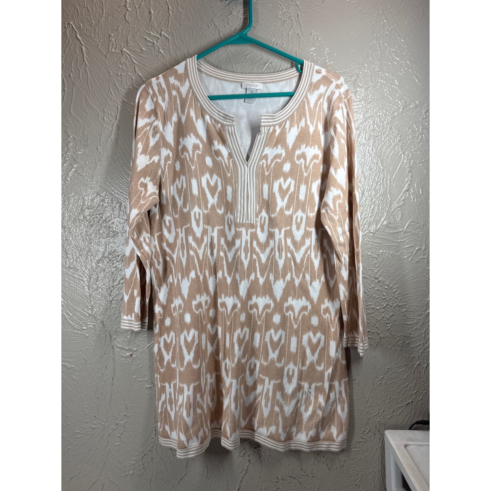 Chico's Scoop Neck Slit pattern 3/4 Sleeve Sweater Dress Tunic Womens Size 2/12