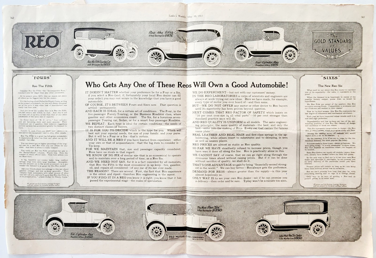 1917 Reo Motor Cars 4 & 6 Centerfold and 45 similar items
