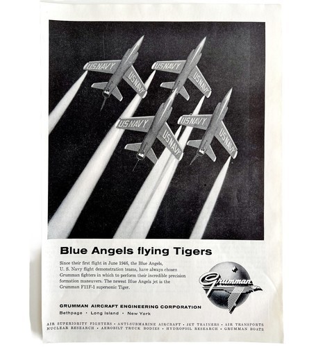 Grumman Blue Angel Jet F11F-1 Tiger 1958 Advertisement Aviation Military DWEE11