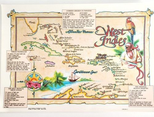 1993 West Indies Virgin Islands Placemat Vintage Drink Recipes Map Theme 2 DWII