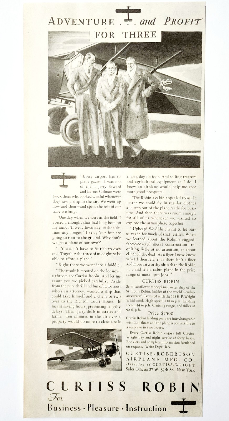 1930 Curtiss Robin Aviation Advertisement and similar items