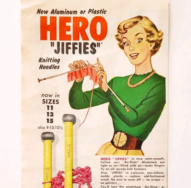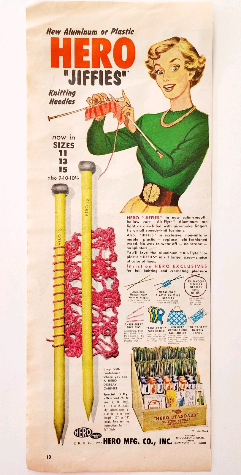 1957 Hero Jiffies Knitting Needles Advertisement Crafts Sewing Supply 2 DWJJ6