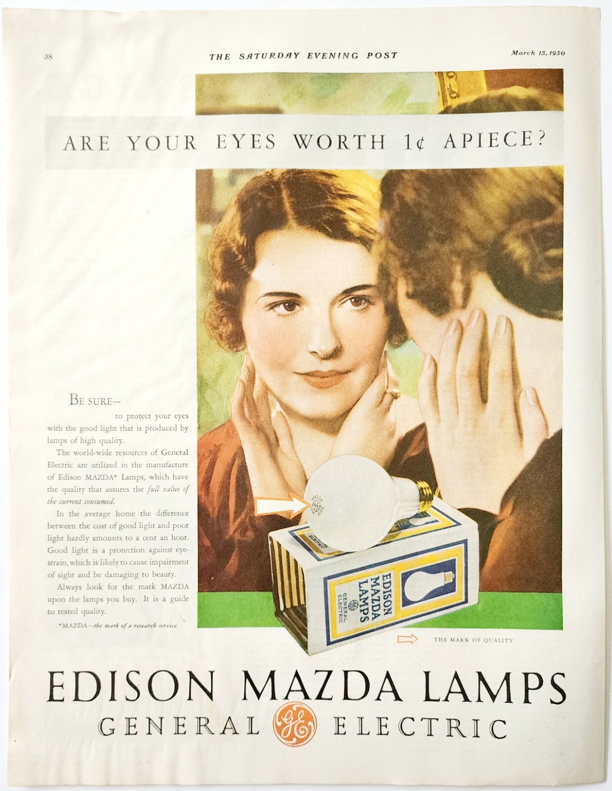 1930 Edison Mazda Lamps Light Bulbs Advertisement General Electric DWJJ19