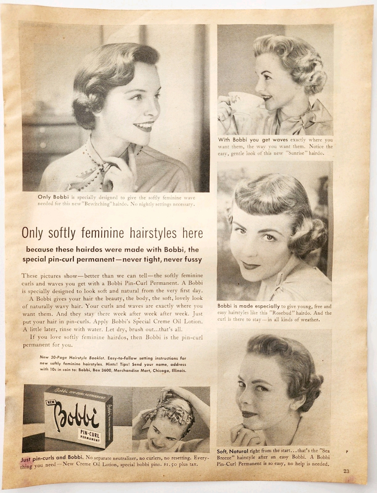 1955 Bobbi Pin Curl Permanent Curlers Advertisement Hair Beauty Hygiene DWQQ7